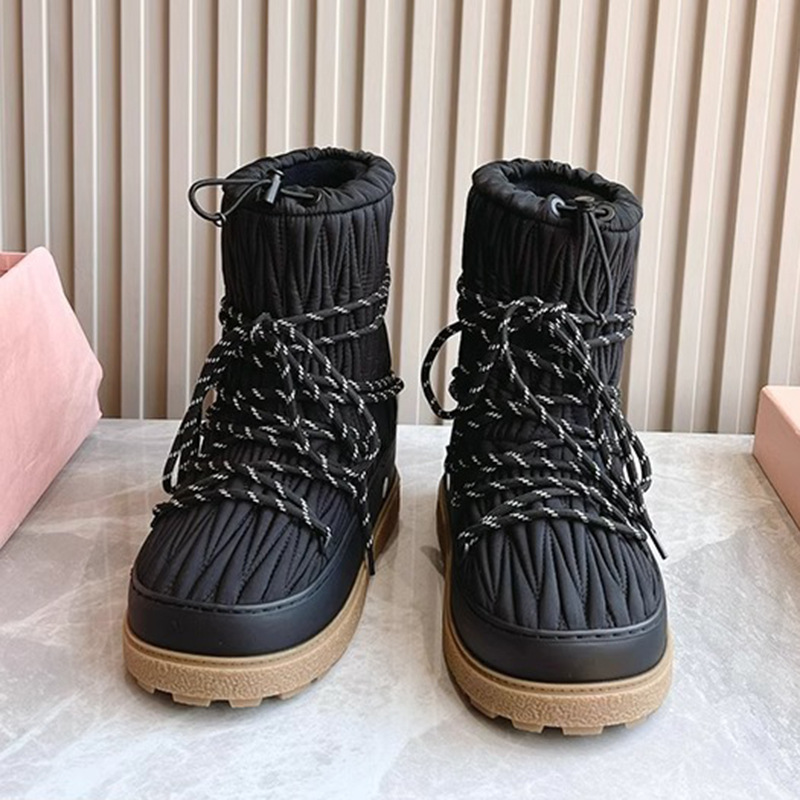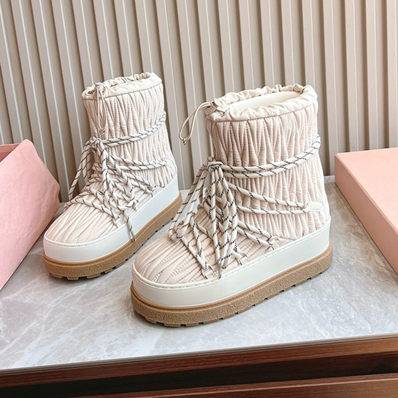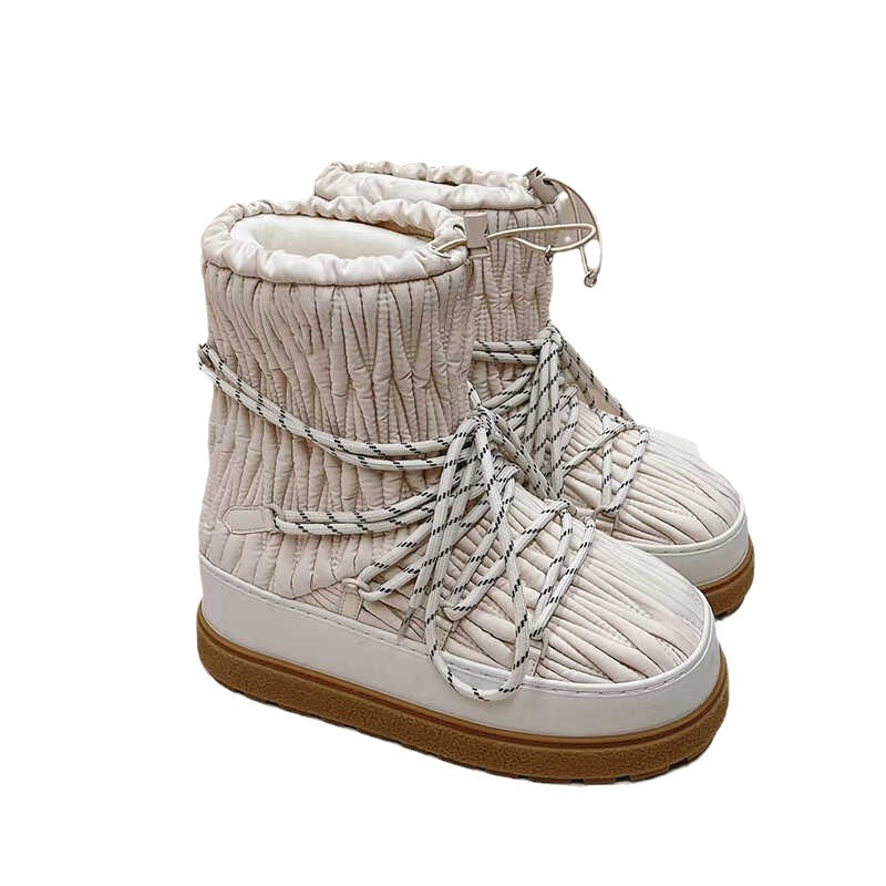 时尚褶皱厚底雪地靴女2025冬季新款百搭棉鞋防滑加厚保暖绑带短靴