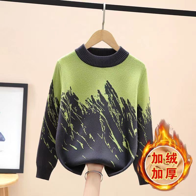 男童毛衣新款加绒加厚秋冬季针织衫线衣保暖上衣中大童潮款帅