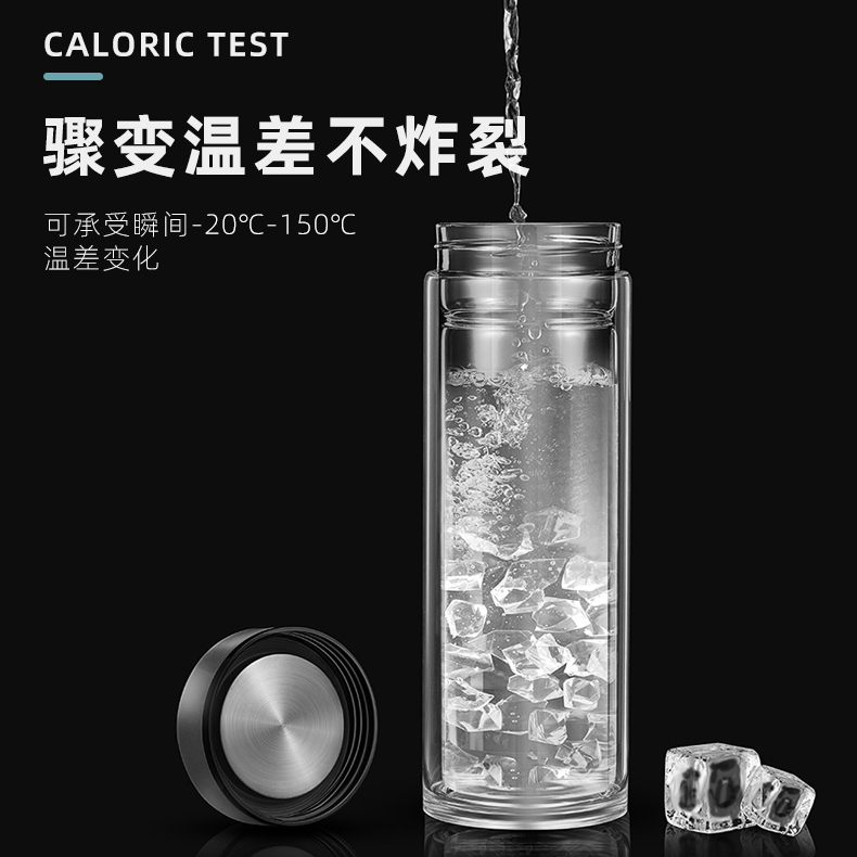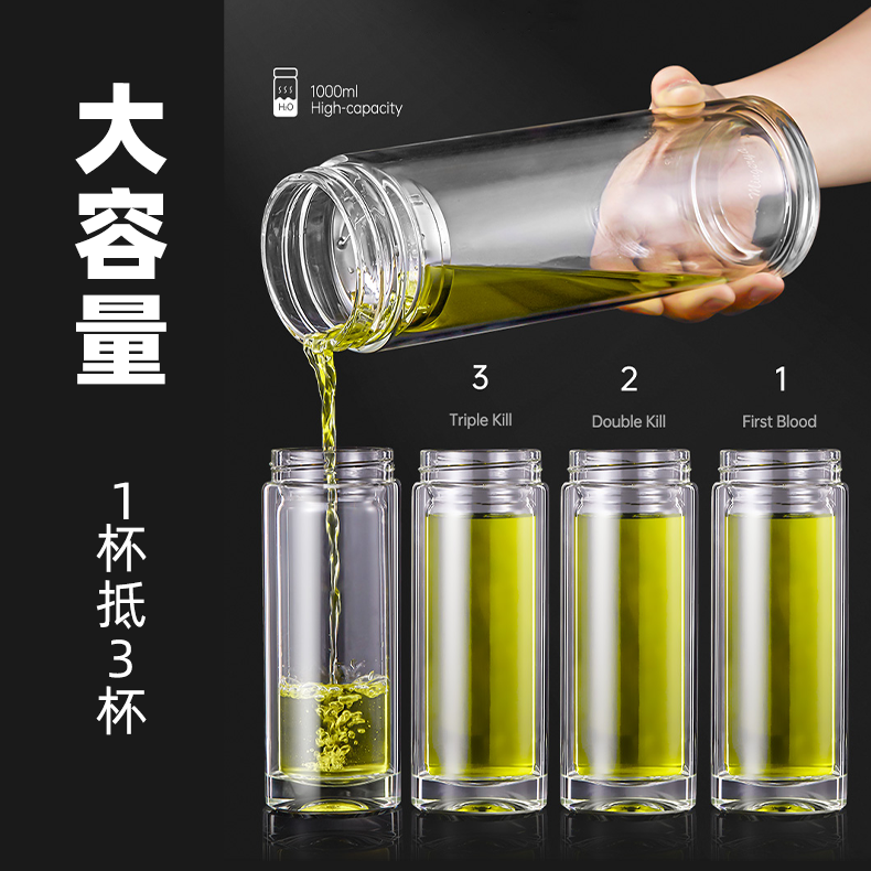 茶杯双层玻璃杯男士耐高温水杯大容量1000ml泡茶杯子防烫便携隔热