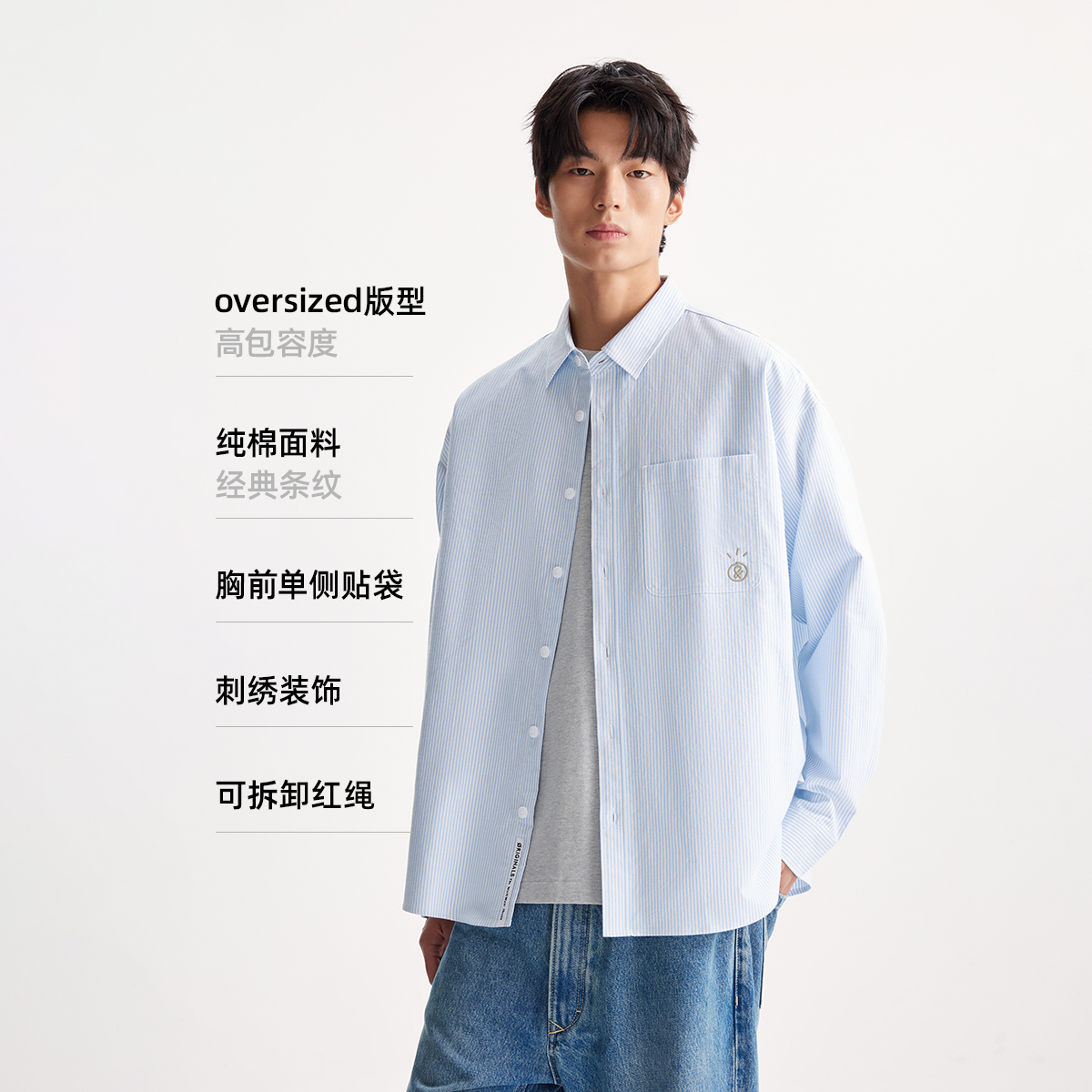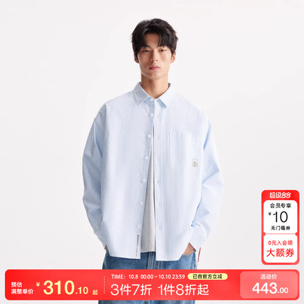 j区绫致杰克琼斯男装衬衫秋冬25年时尚条纹舒适全棉宽松翻领上衣