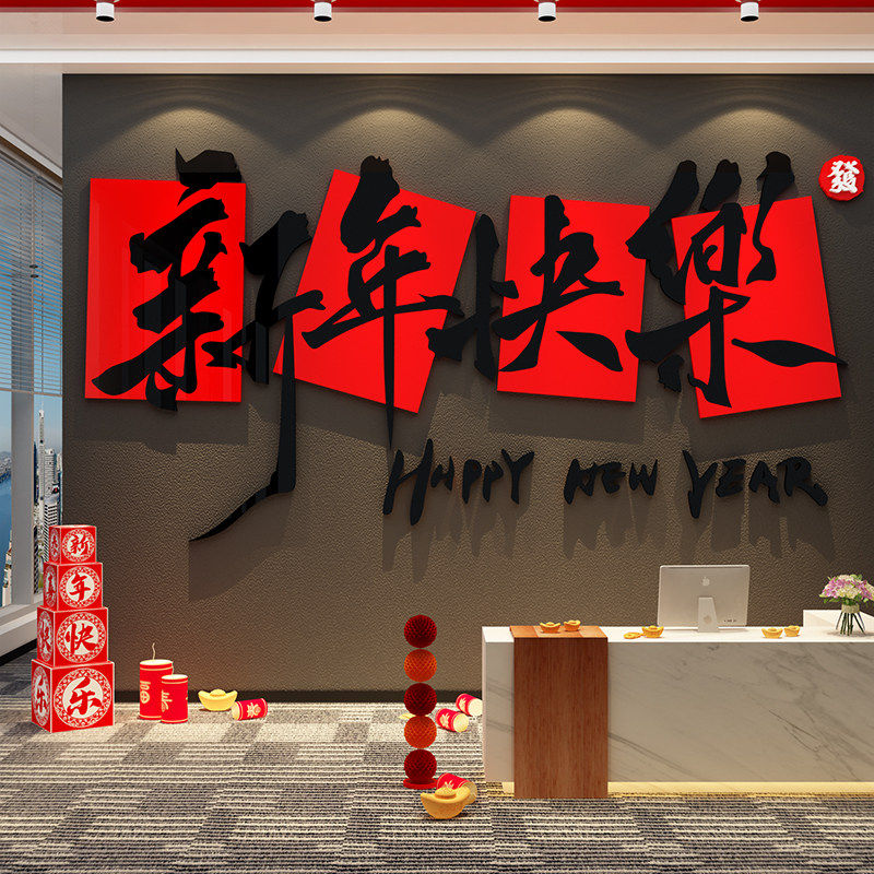 职场开门红2026马新年银行厅堂前台医院墙面装饰司办公室文化布置