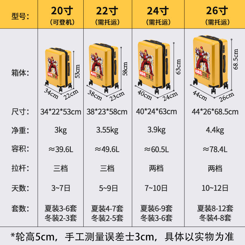 迪士尼儿童行李箱男孩卡通钢铁侠20寸拉杆密码箱学生可登机旅行箱