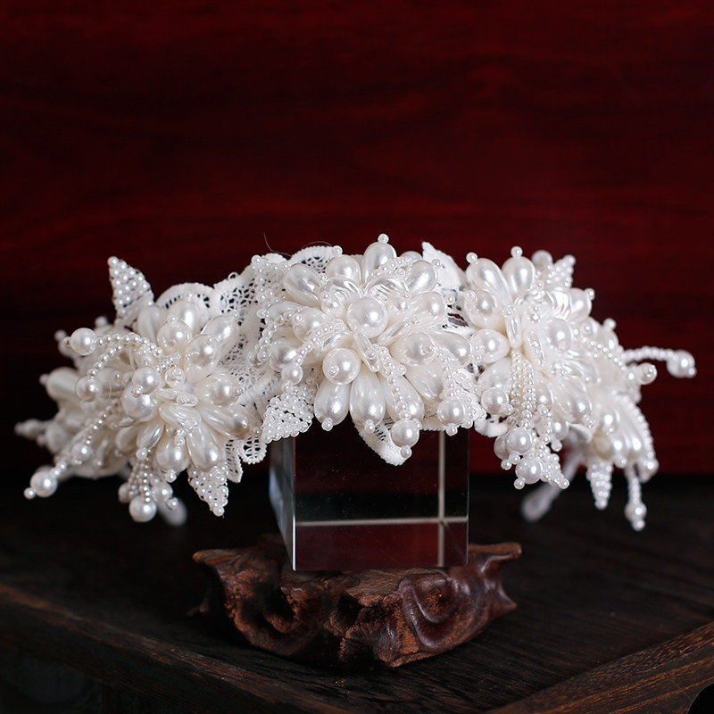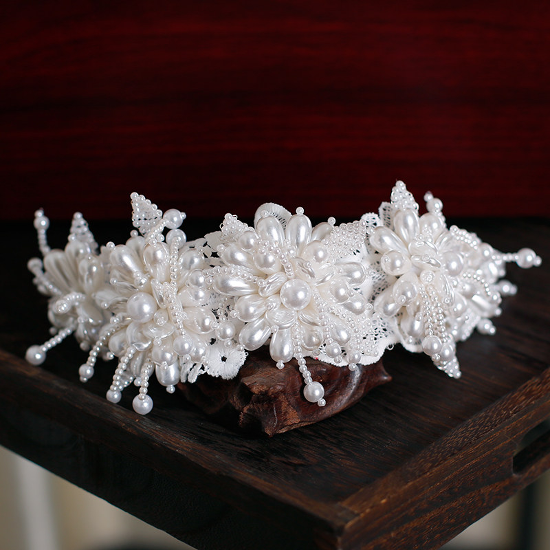 新款复古蕾丝简约新娘礼服皇冠婚纱王冠头饰精致大气造型公主发饰