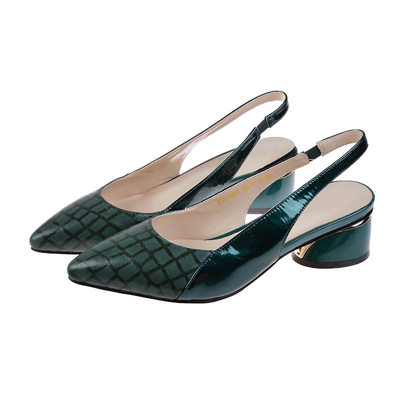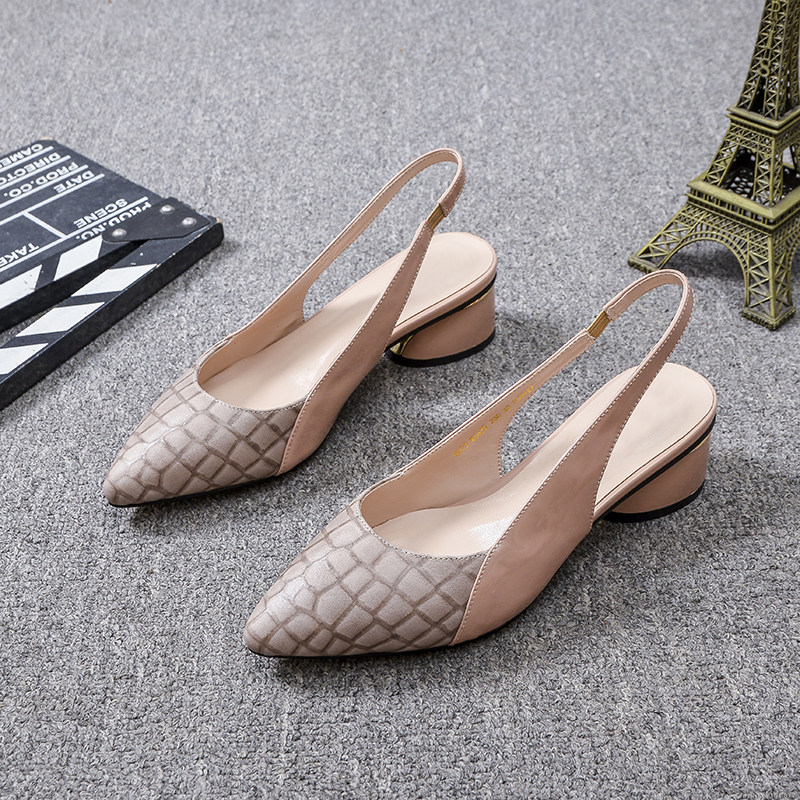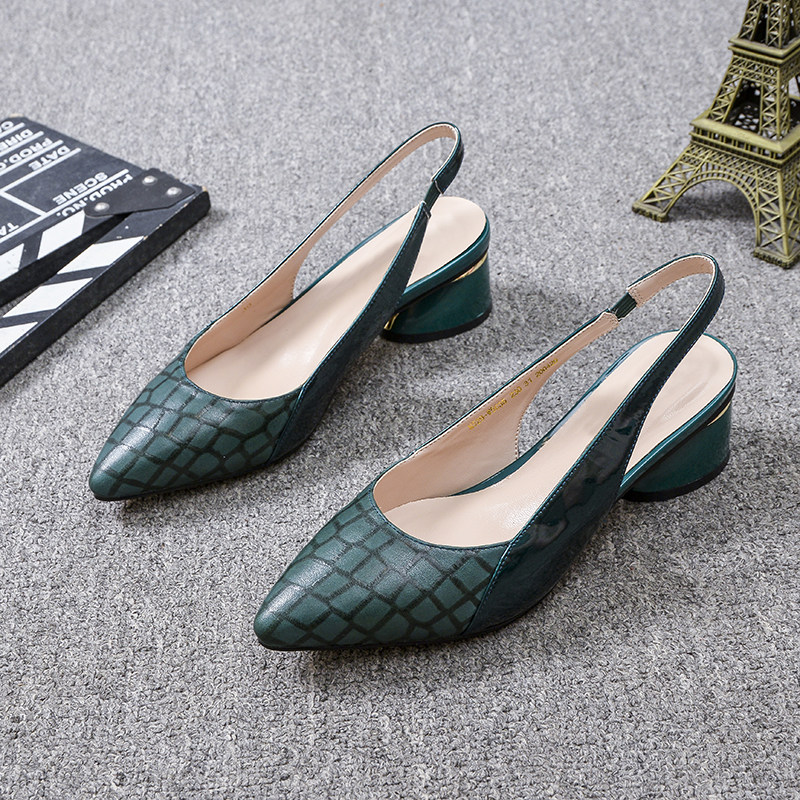 包头凉鞋女粗跟真皮2021年夏季新款时尚尖头中跟一字带后空单鞋女