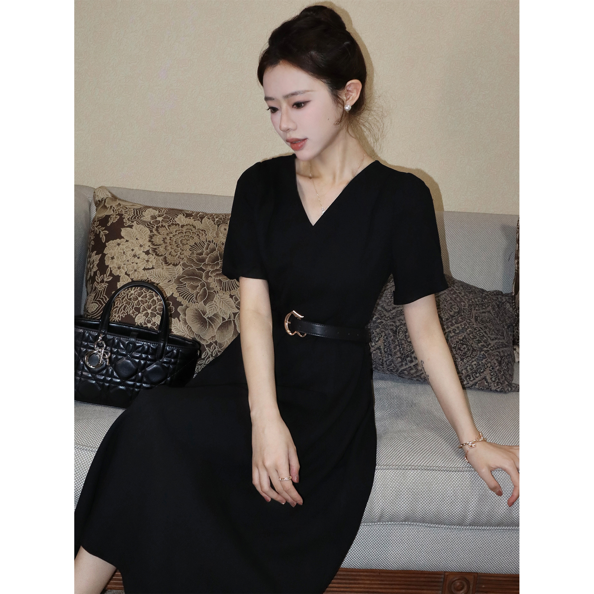邱莹莹 HELA AOMI“醋酯纤维59.1% 仲夏夜颂”赫本风收腰连衣裙女