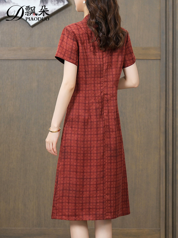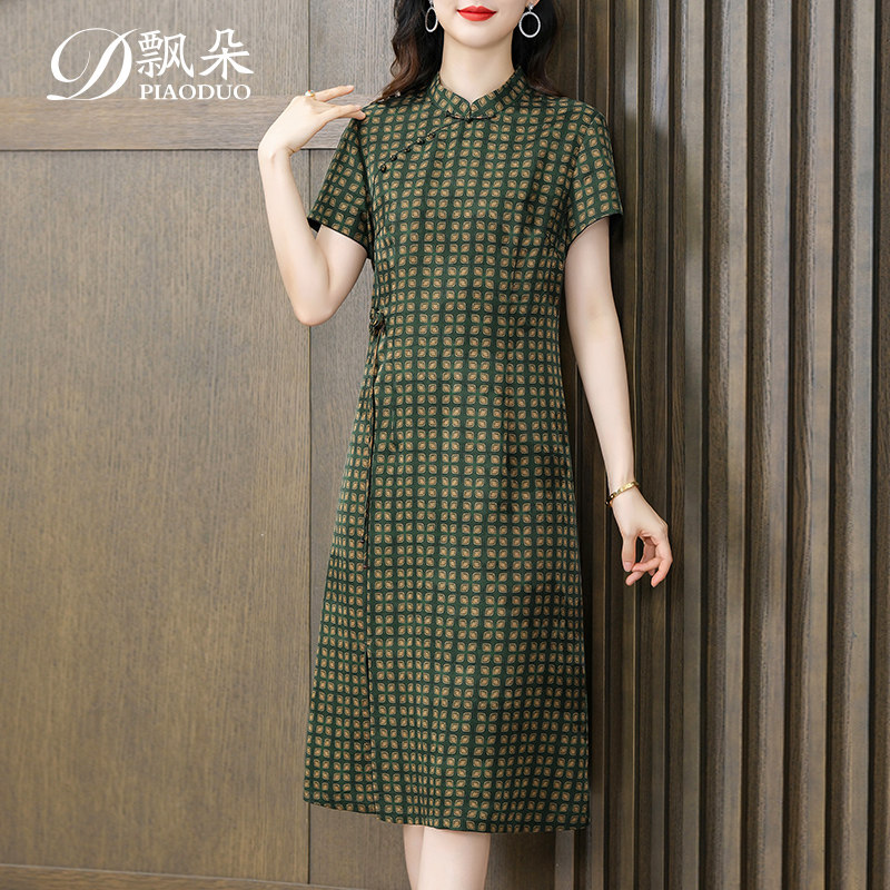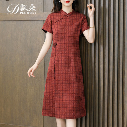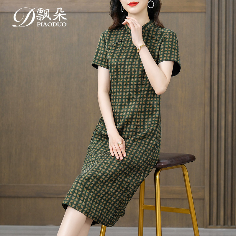 品牌花罗香云纱连衣裙女新款2024夏季真丝专柜正品妈妈桑蚕丝裙子