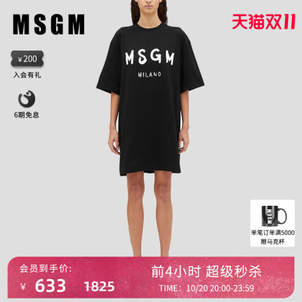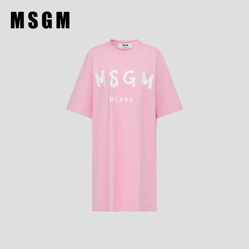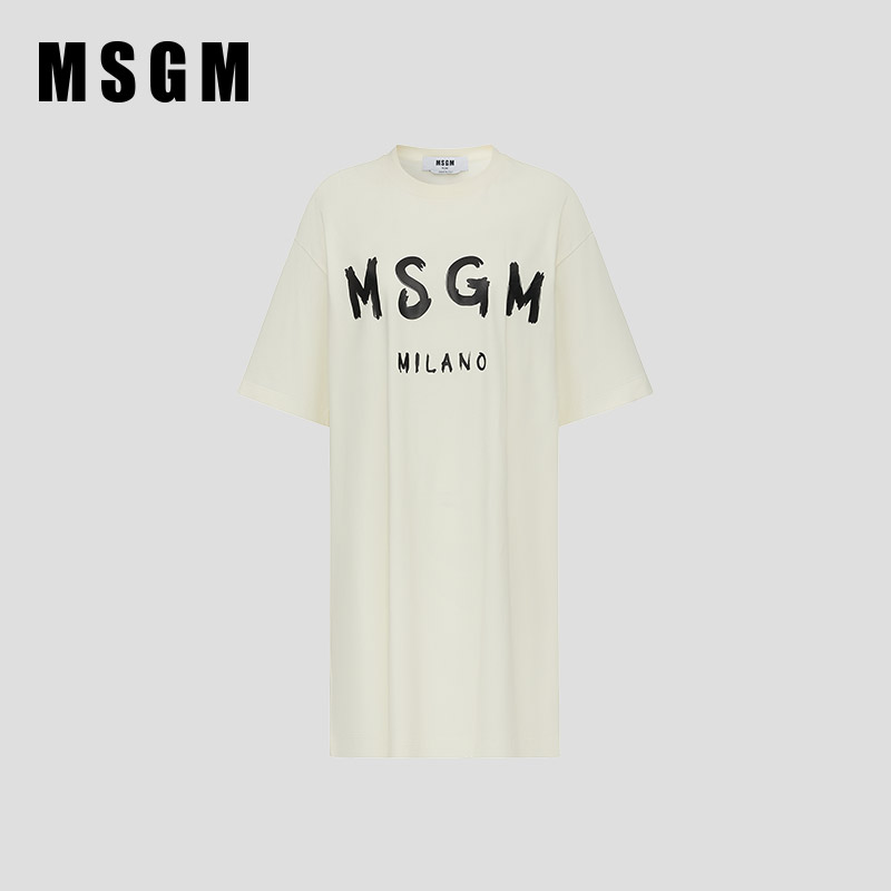 MSGM春秋新款女士国际大牌印花圆领纯棉短袖T恤式连衣裙上衣白色