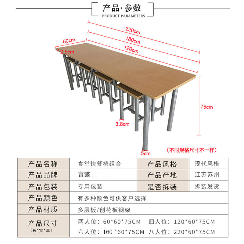 学校员工食堂快餐桌椅组合4人6人8人 挂凳台小吃店用快餐桌椅