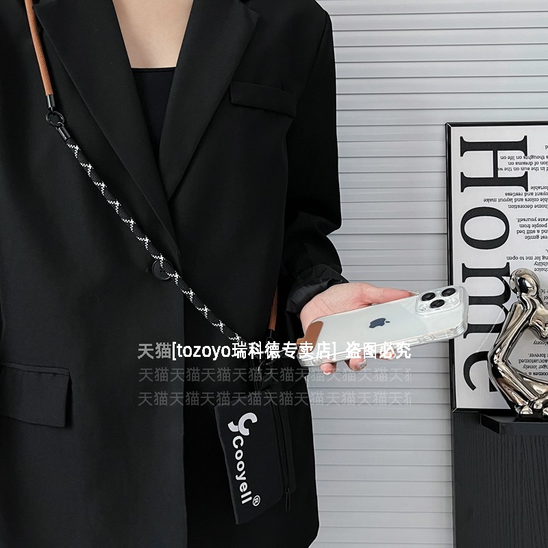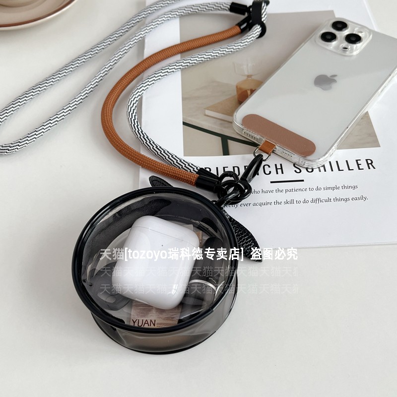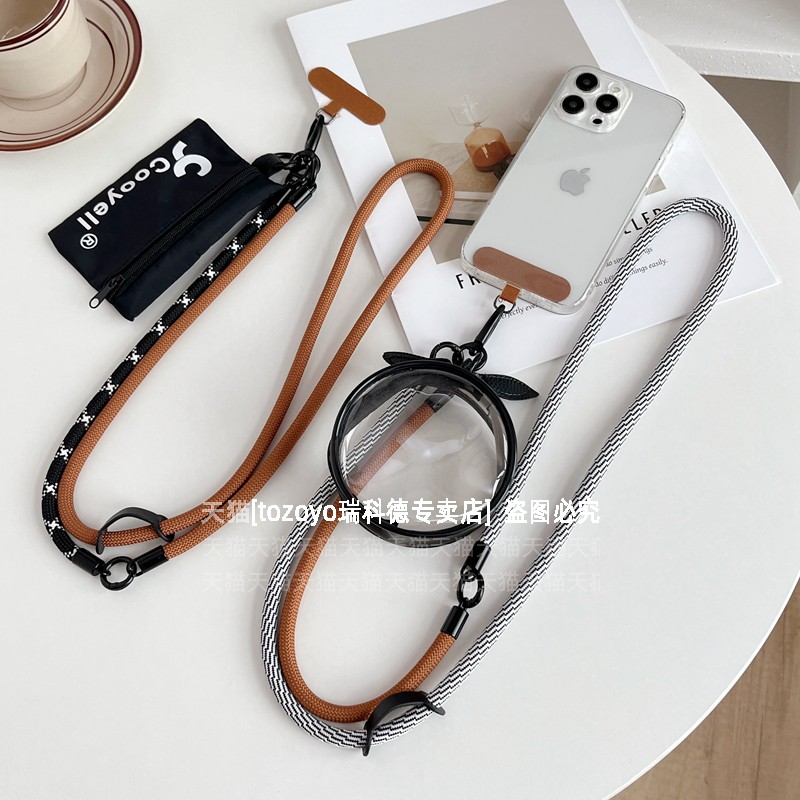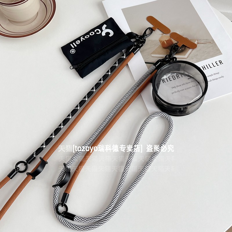 高级感黑棕色手机挂绳带小包旅行迷你收纳零钱包挂件带子挂脖斜挎可背高端防盗绳手腕链钥匙耳机口红女夹片壳