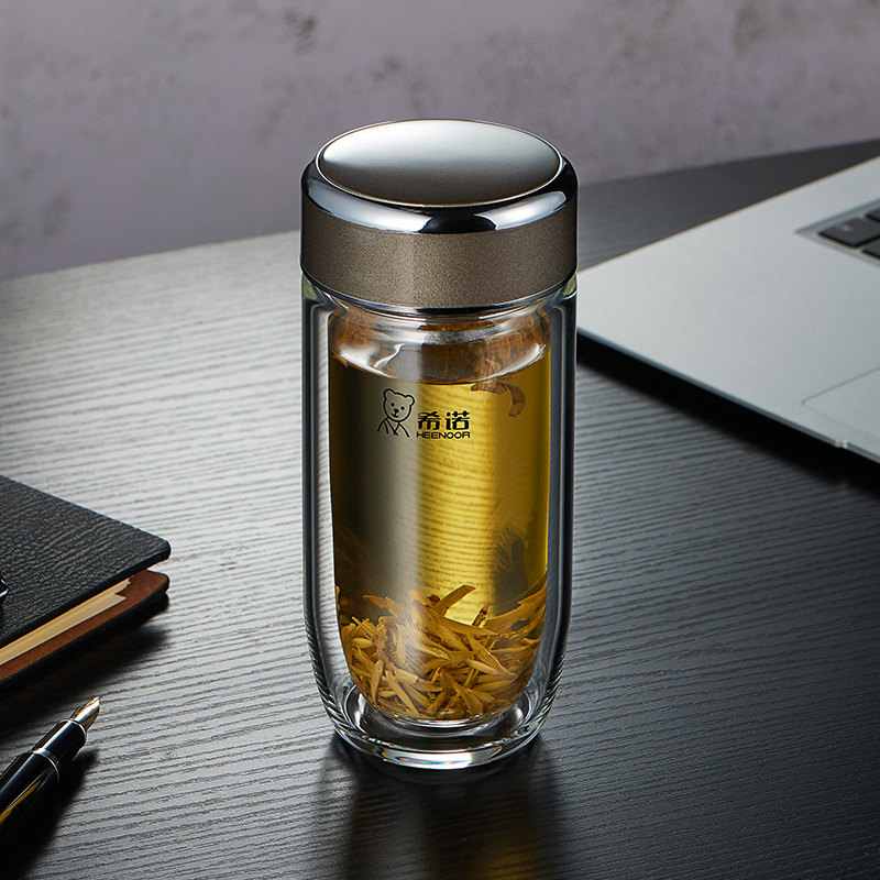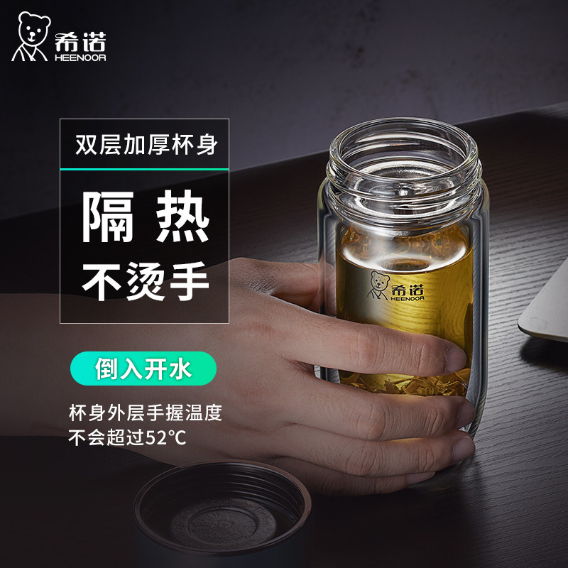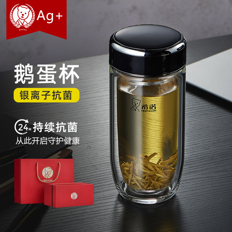 希诺鹅蛋双层玻璃杯官方正品 高档水杯 男女士银离子抗菌泡茶杯