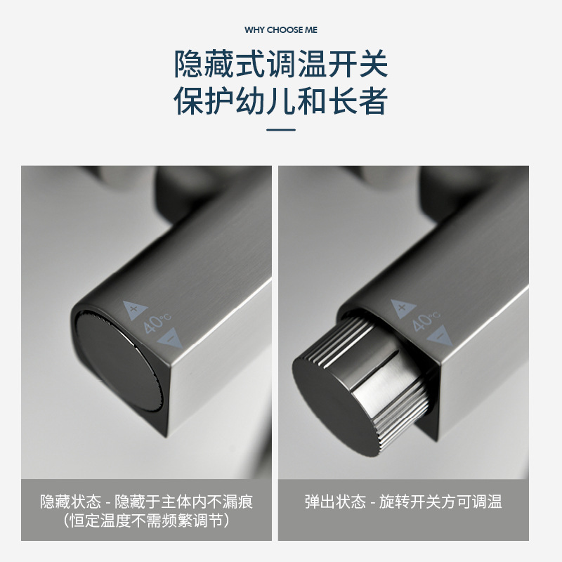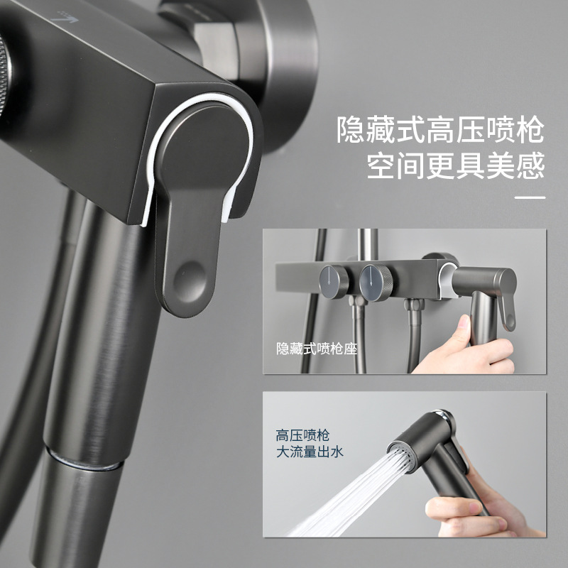 指针枪灰色恒温淋浴花洒套装隐藏式冷热调温增压喷枪淋雨沐浴喷头