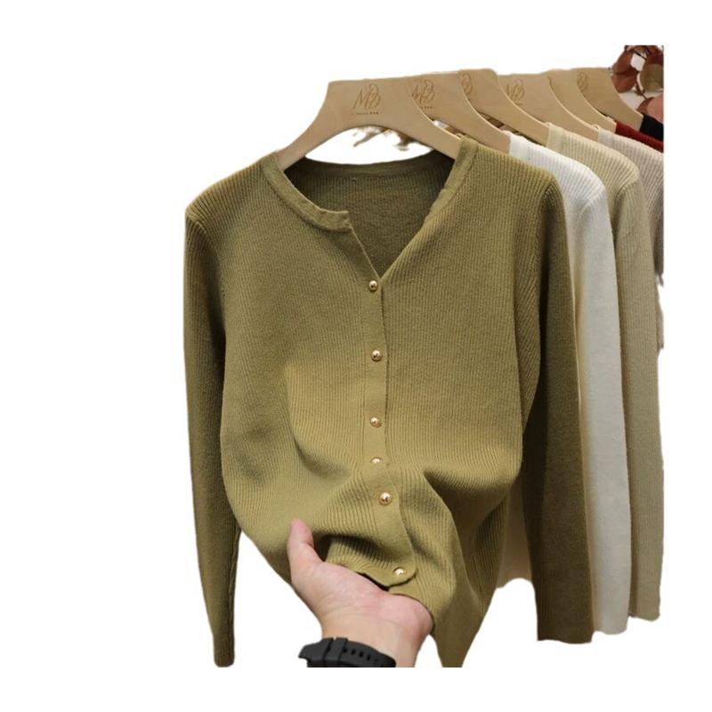 设计感V领针织长袖开衫女秋季薄款修身显瘦别致小众打底衫上衣