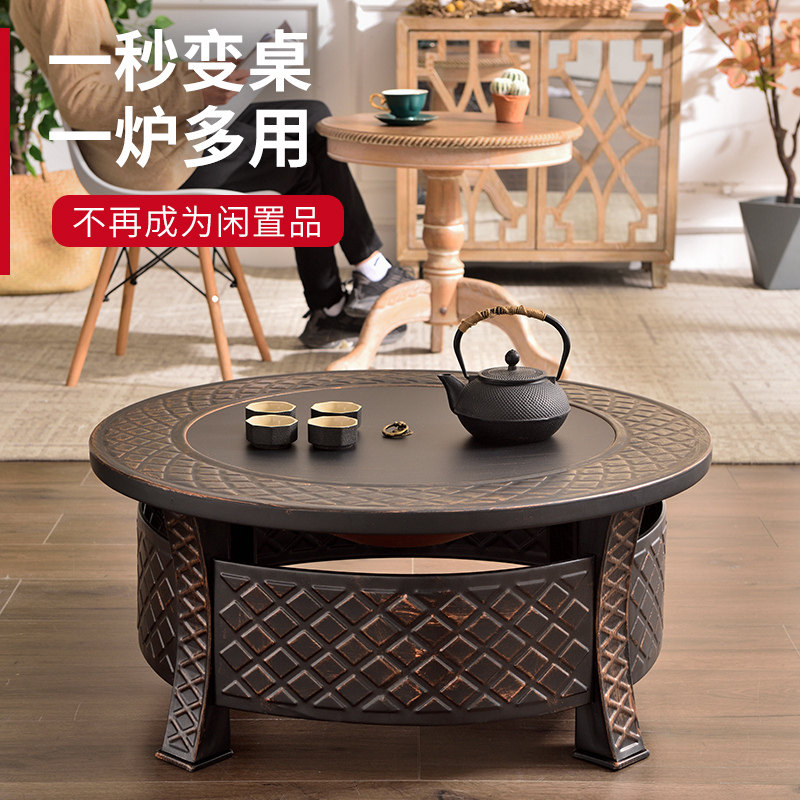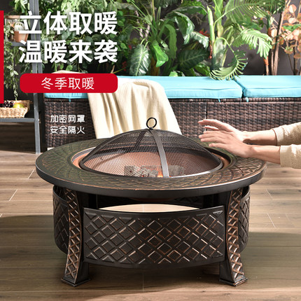 庭院烤火盆围炉煮茶烤火炉套装家用烧烤炉室内取暖炉户外烧烤桌子