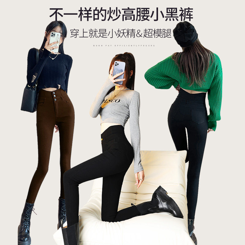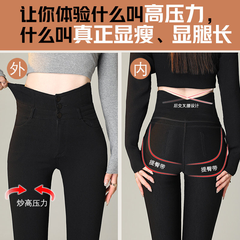 高腰魔术裤女外穿2023秋冬新款黑色显瘦紧身加绒小黑裤小脚打底裤