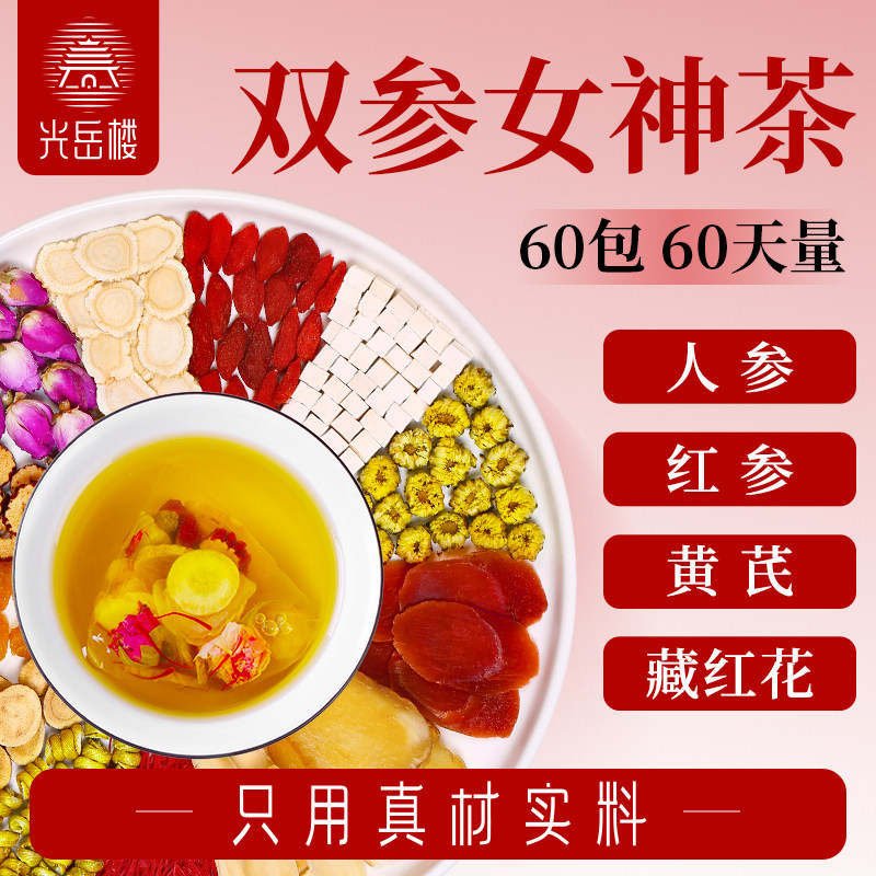 光岳楼双参女神茶人参石斛黄芪藏红花红枣桂圆枸杞玫瑰花茶养生茶