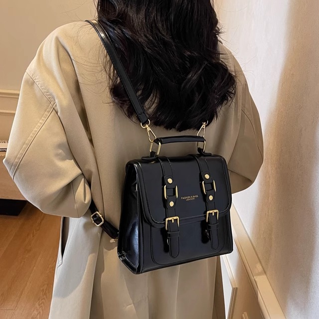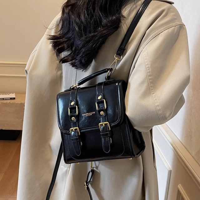 英伦学院风复古黑色双肩包包女2025新款大学生小背包休闲旅游书包