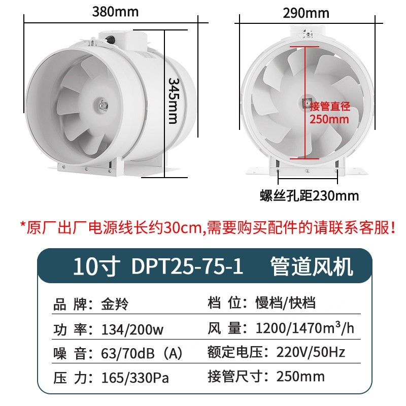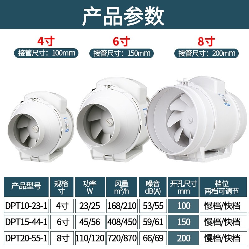 金羚6寸强力管道抽风机4寸8寸厨生间强力排风换气扇房油烟家用卫
