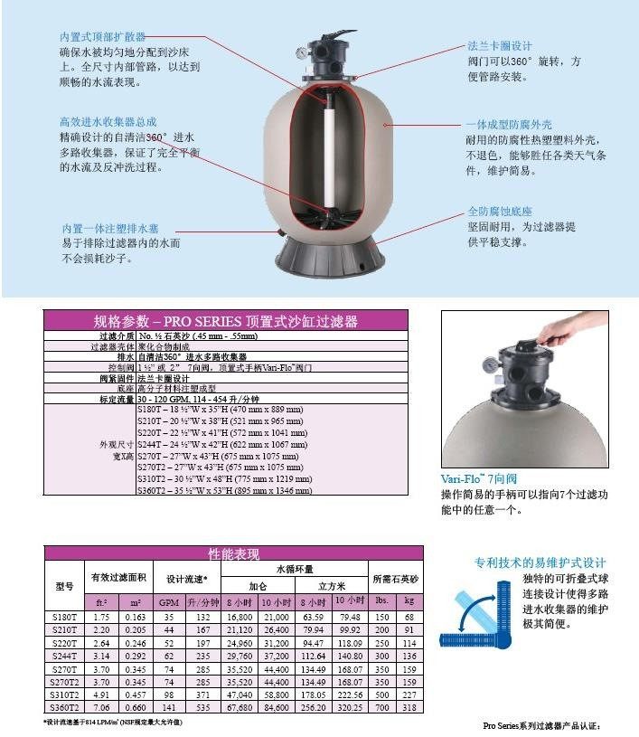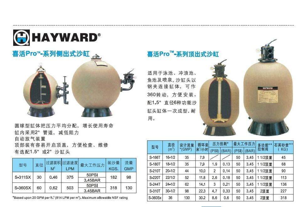 原厂美国HAYWARD亨沃(喜活 )I型 16"配1.5"多向阀顶置式沙过滤器