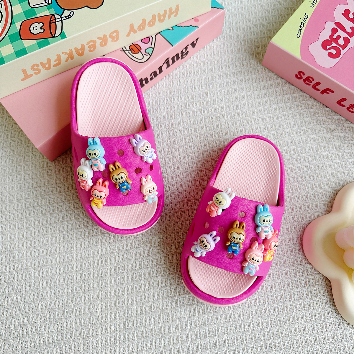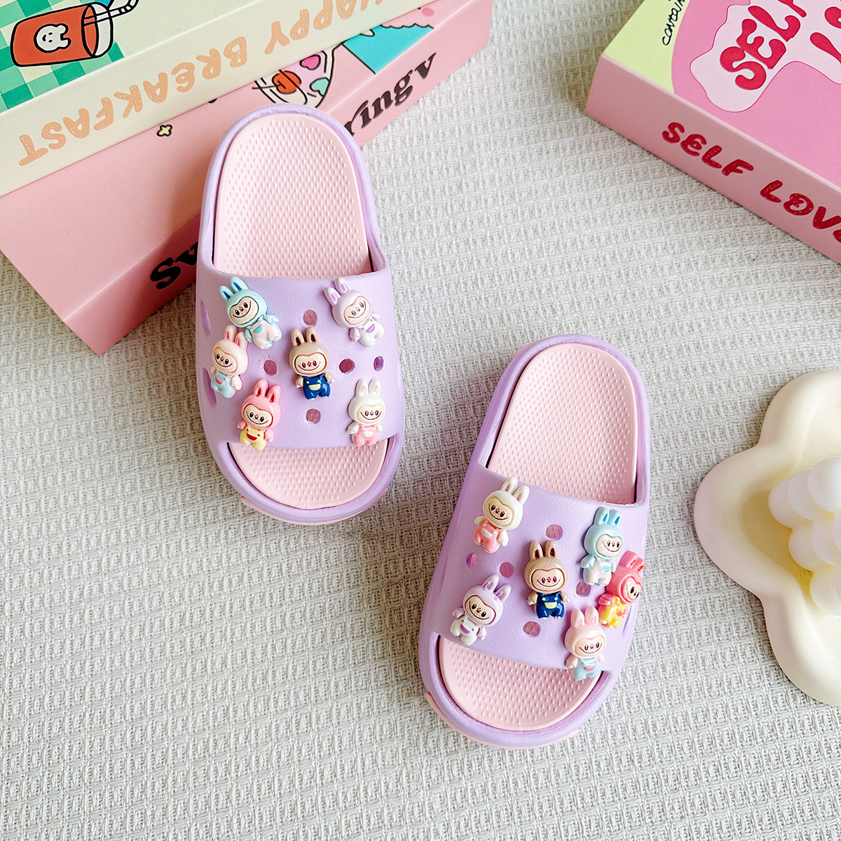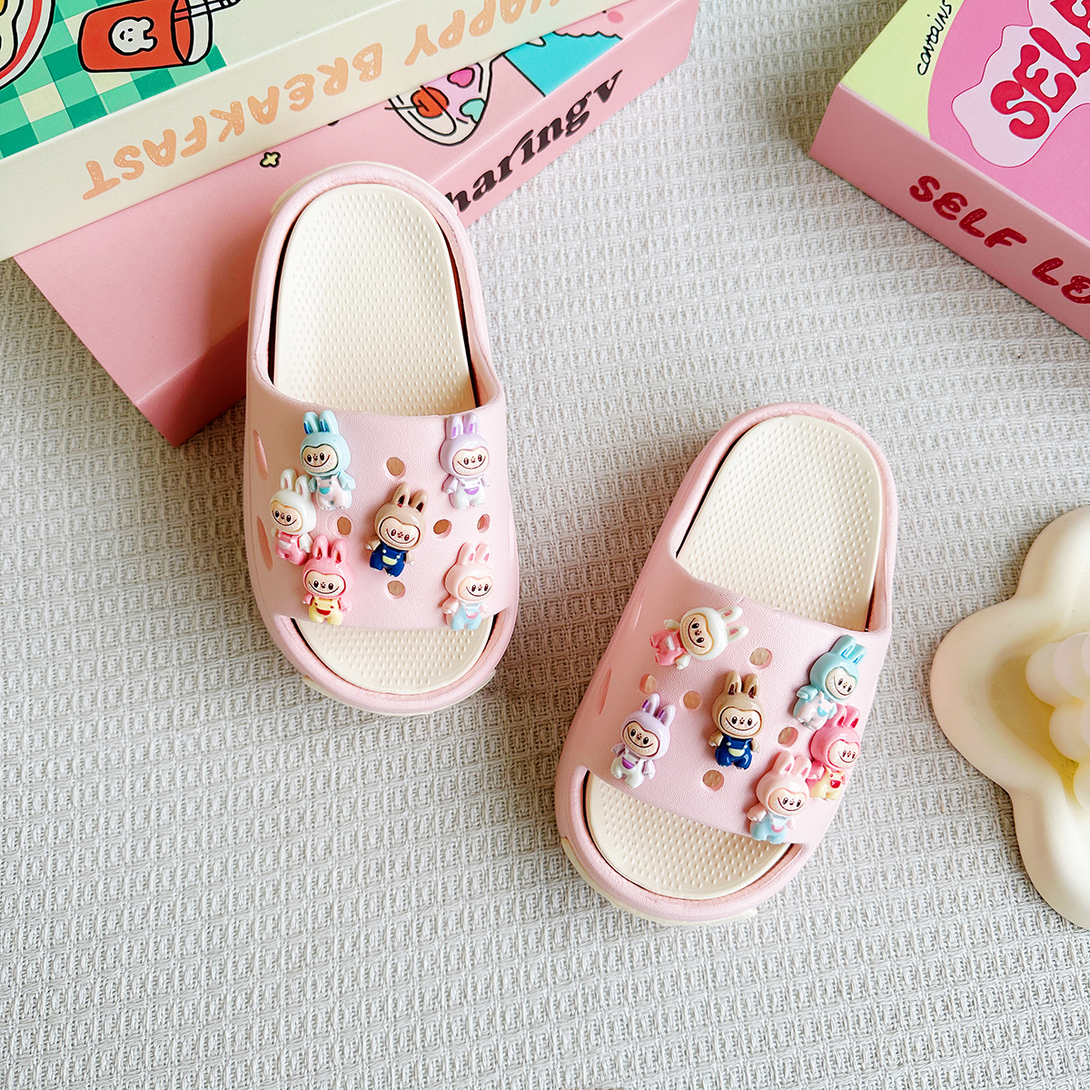 新款爆款卡通彩虹拉布布百搭男女童EVA拖鞋时尚软底防滑凉鞋