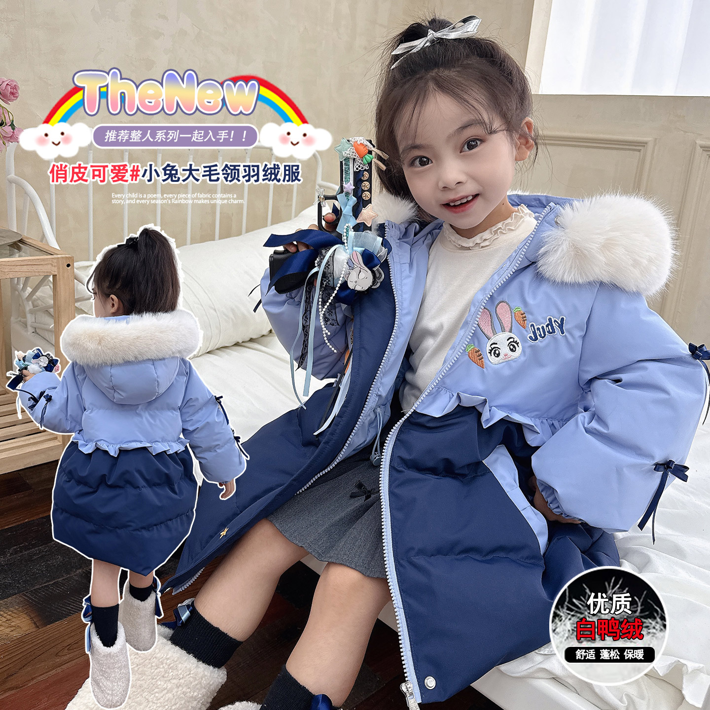 女童兔子警官绒服新国标90白鸭绒