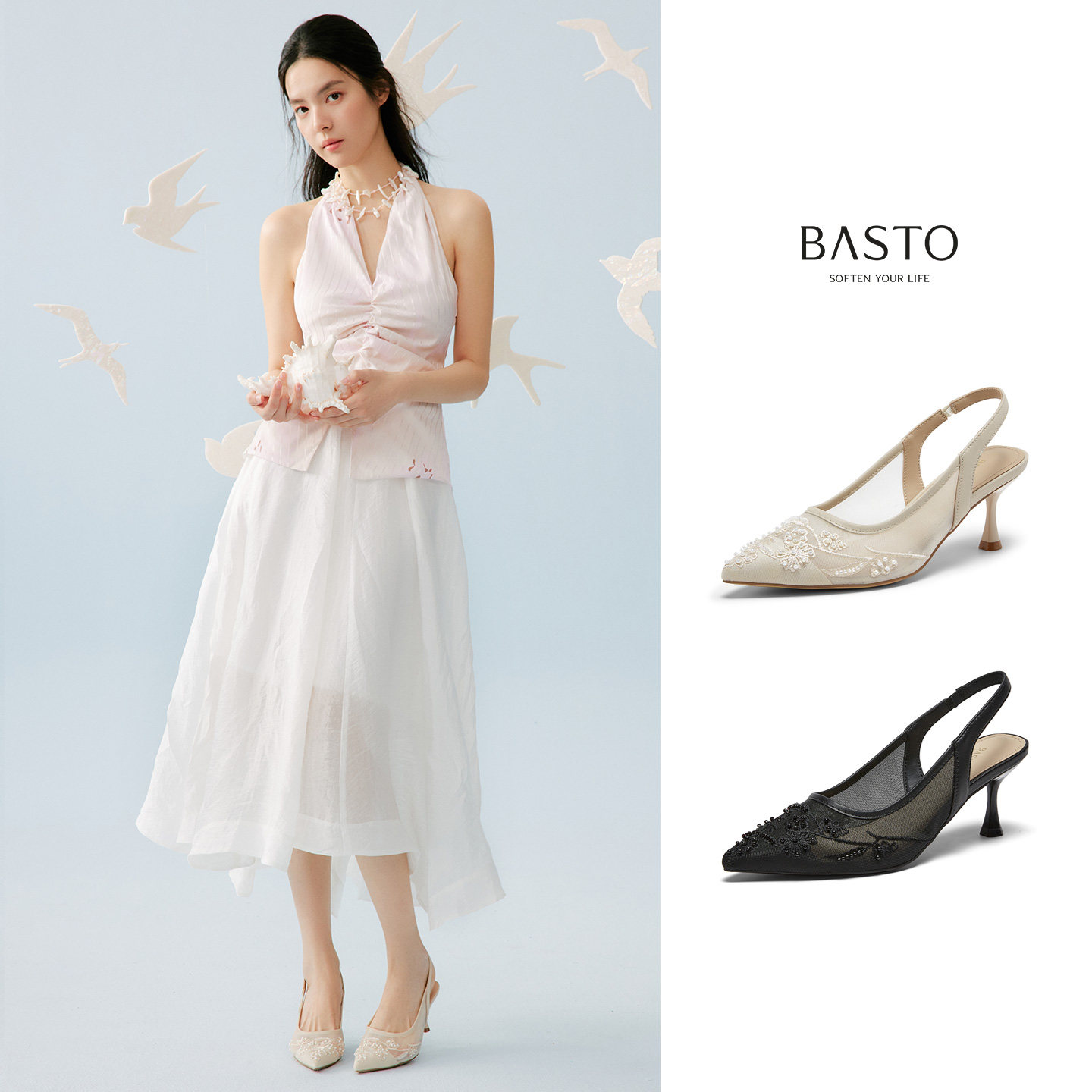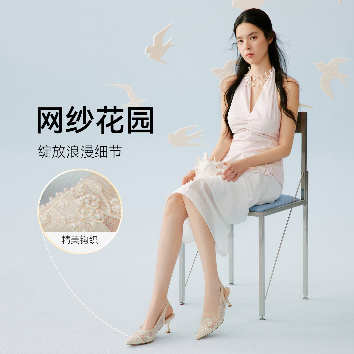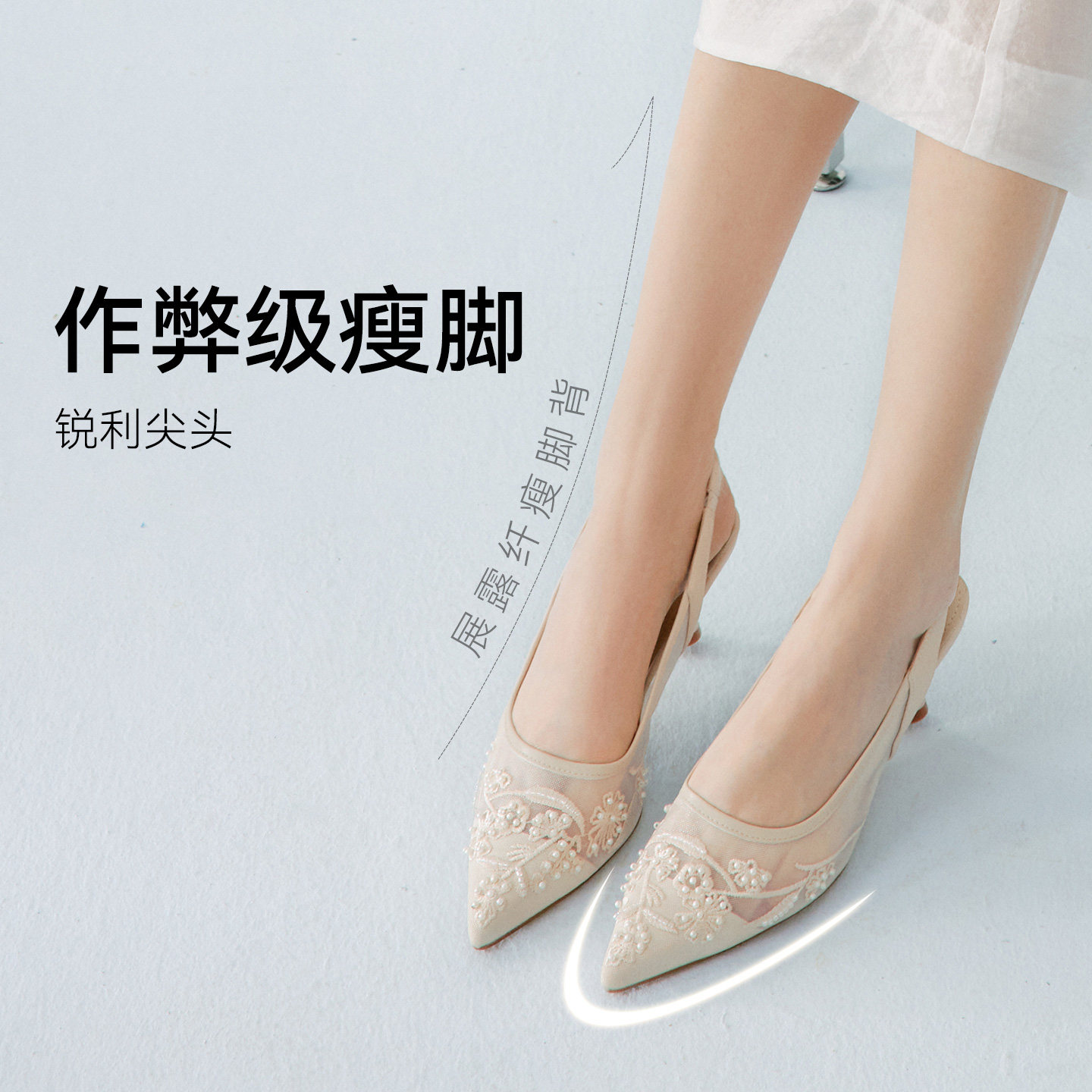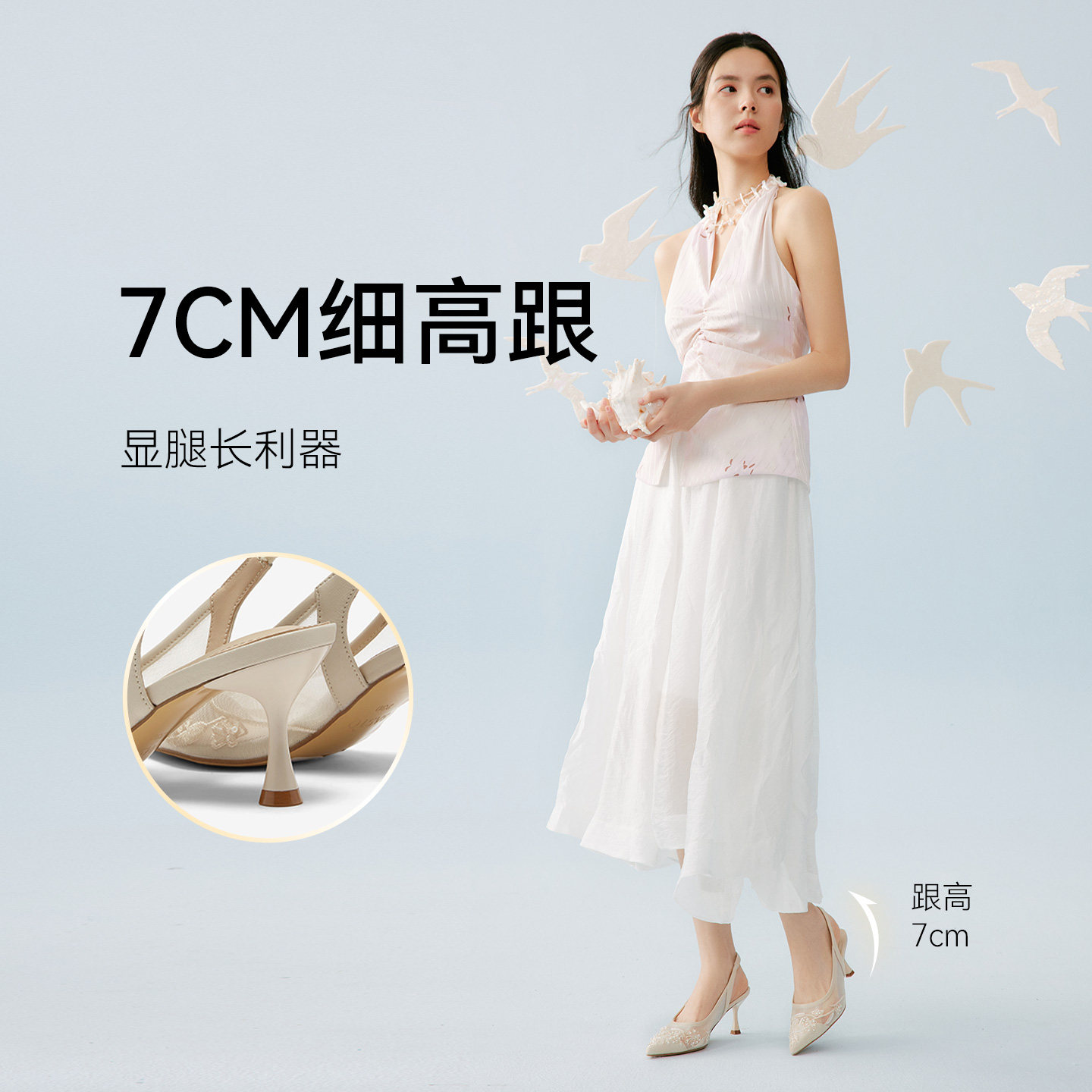 百思图2026夏季新款后空凉鞋时尚通勤细高跟尖头女鞋K8681BH6