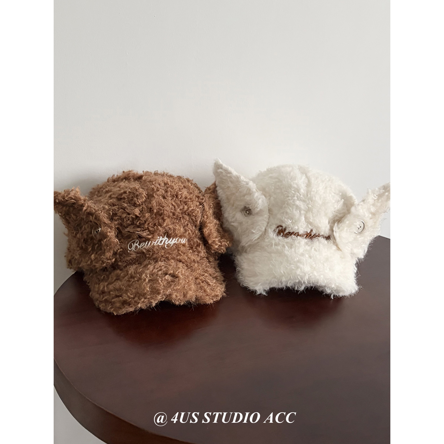 韩版新款可爱天使翅膀鸭舌帽女秋冬季保暖加厚毛绒绒棒球帽显脸小