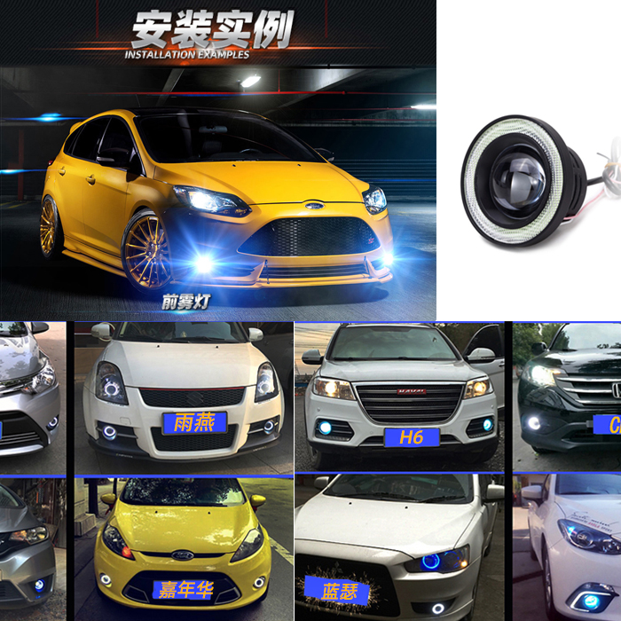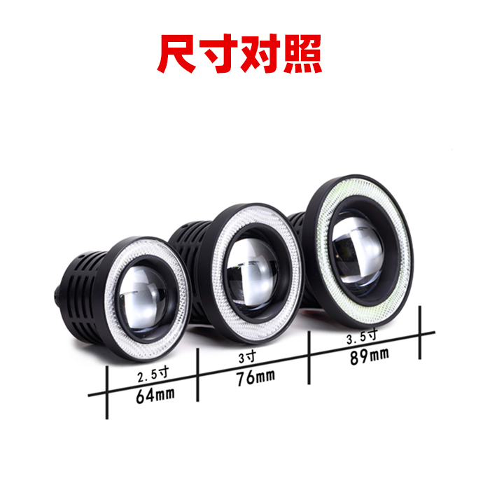 汽车LED透镜雾灯总成cob天使眼改装超亮通用2.5寸行车日行灯3.5寸