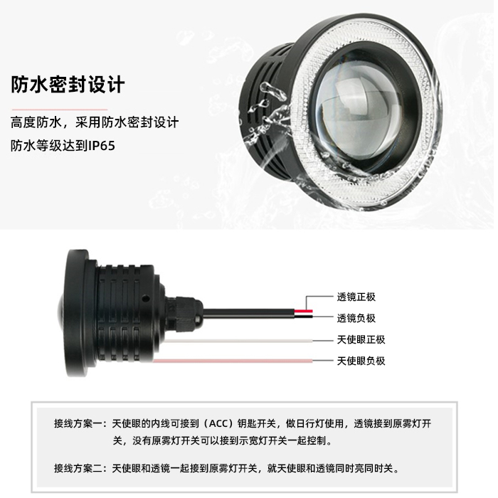 汽车led透镜雾灯总成cob天使眼