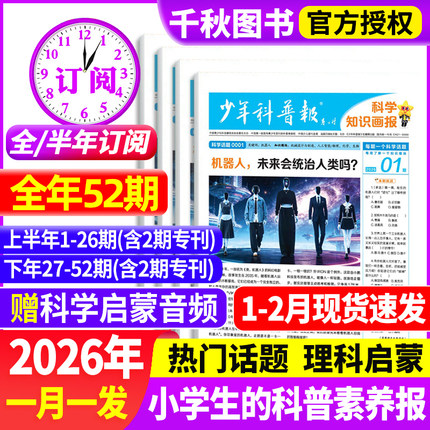 少年科普报科学知识画报2026年1-2月现货【全年/半年订阅】1-12月春季/秋季学期8-15岁小学生百科素养报纸杂志大语文天星非过刊
