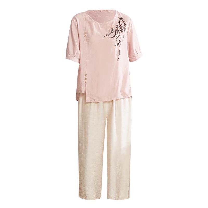 喜卉妈妈夏装洋气中式短袖上衣服阔腿裤两件套休闲套装中老年女装