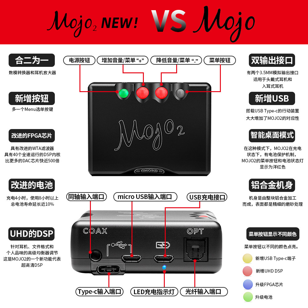 CHORD mojo2代解码耳放一体机和弦音频解码器DAC耳机放大器小尾巴