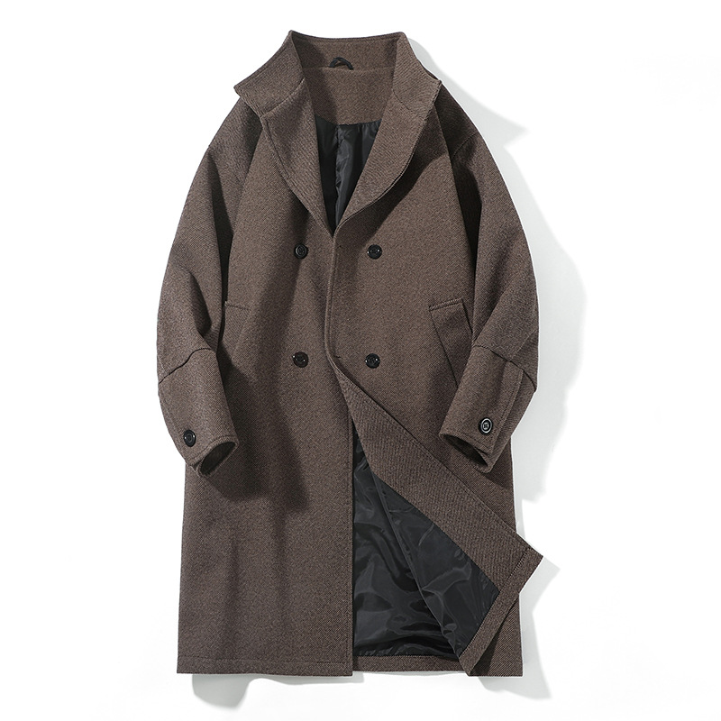 毛呢大衣 男士中长款双排扣风衣 秋冬季百搭呢子外套宽松大码男装