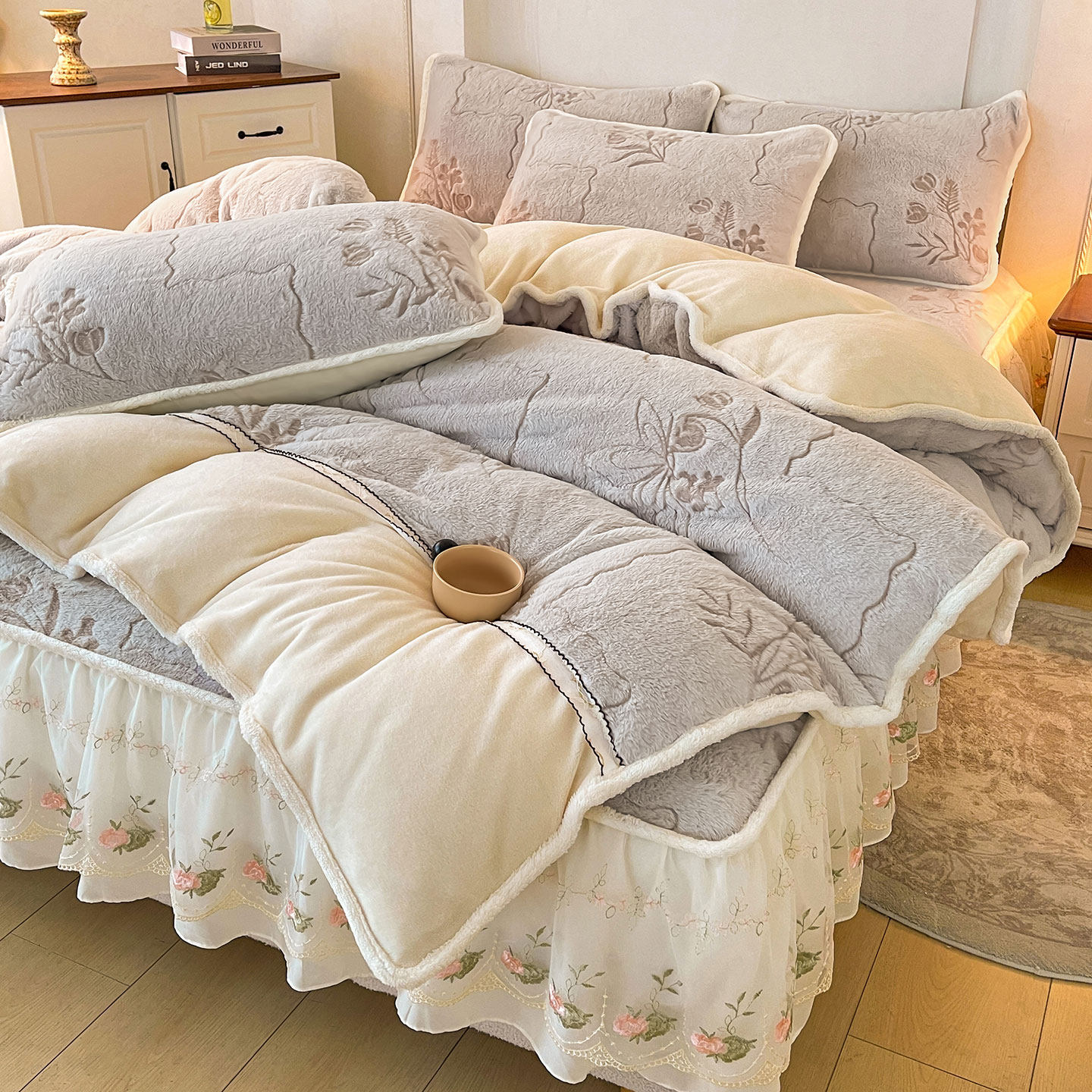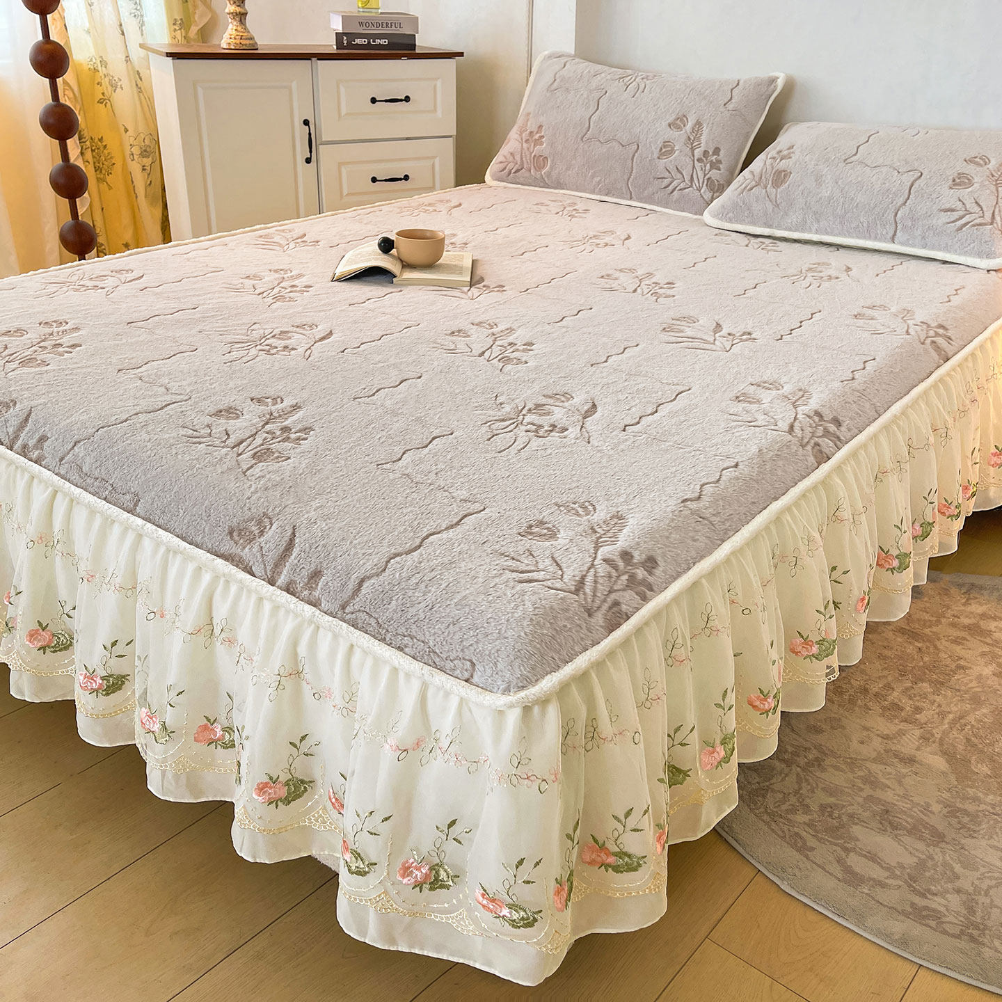 品牌牛奶绒床笠罩带裙边毛毯冬季天保暖垫保护套四件套单2025新款