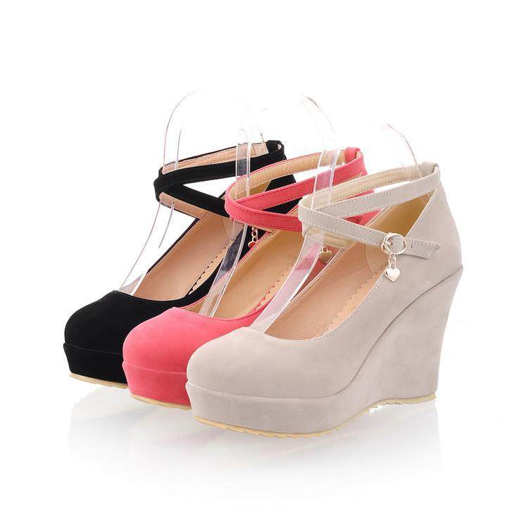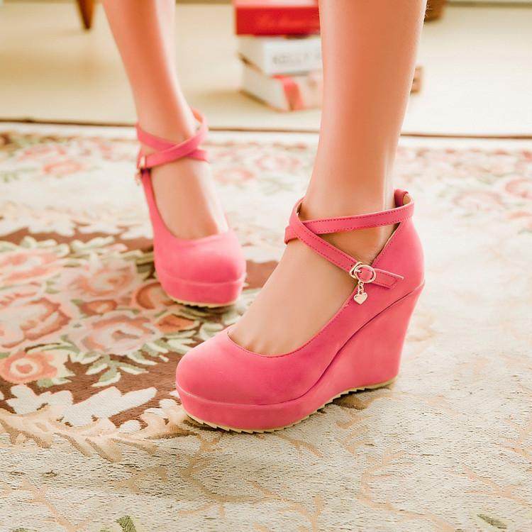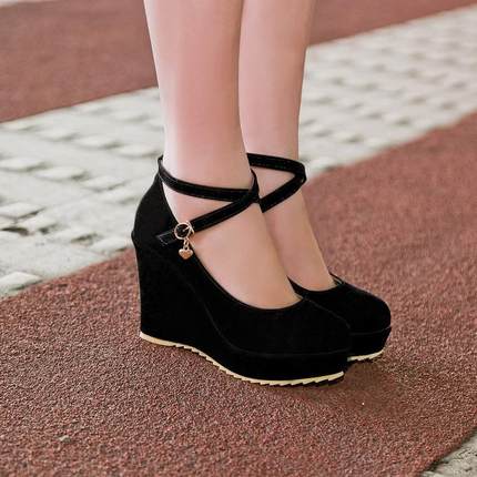 2018新款女春鞋浅口圆头坡跟单鞋女高跟鞋韩版公主鞋甜美淑女鞋夏