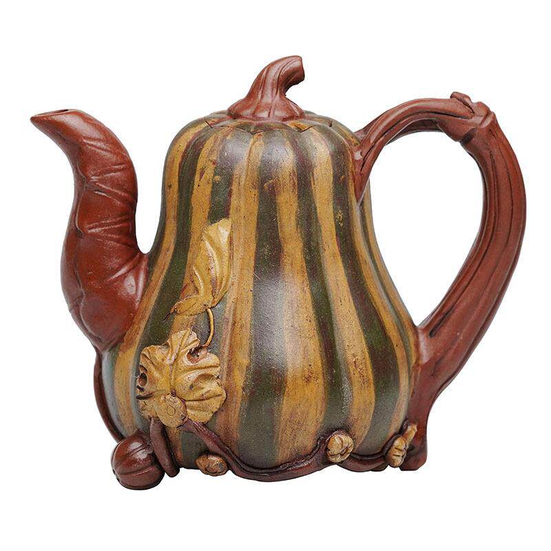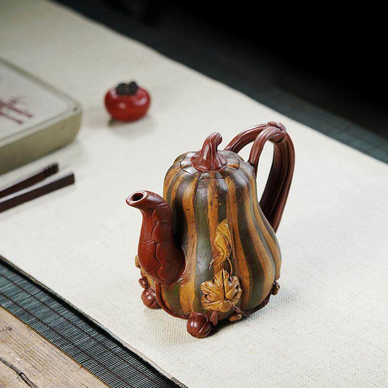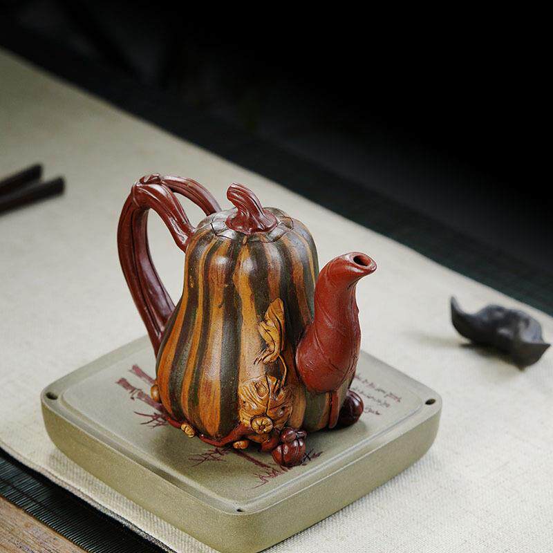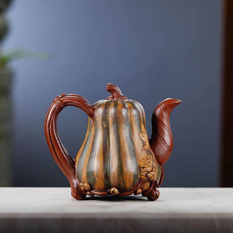 防老紫砂壶处理宜兴原矿紫砂南瓜壶彩绘多子多福筋纹壶茶具厂