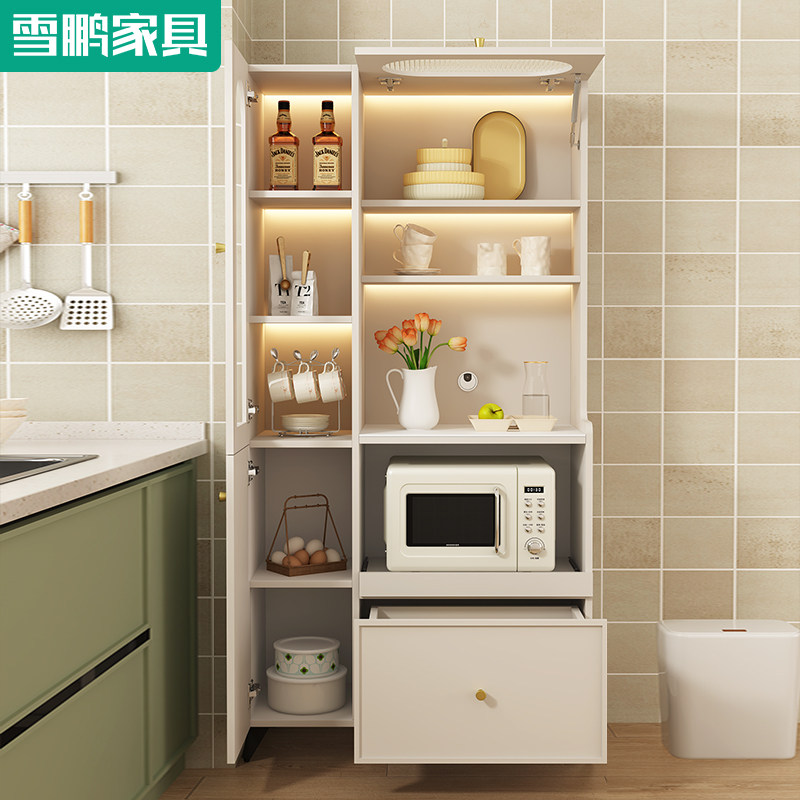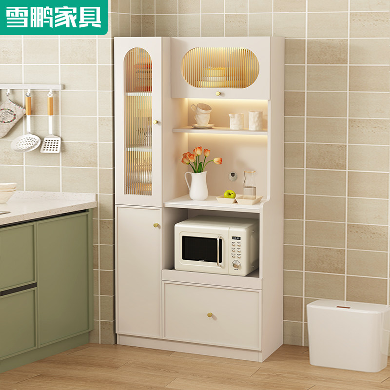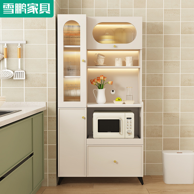 轻法式奶油风多功能岩板餐边柜厨房餐厅靠墙家用微波炉烤箱储物柜
