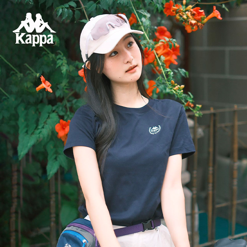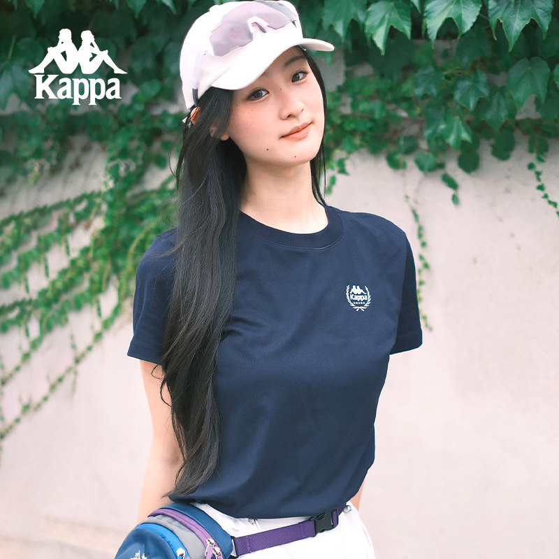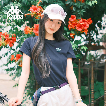 Kappa卡帕背靠背夏季新款纯棉运动短袖t恤复古修身短款针织上衣女