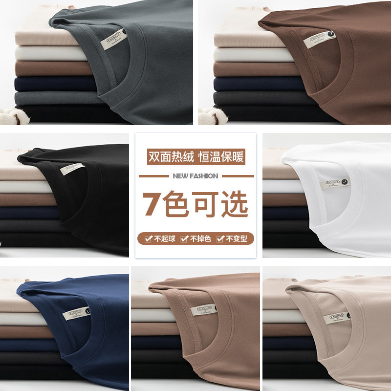 280g重磅双面德绒打底衫圆领短袖t恤男装加绒保暖半袖纯色上衣服