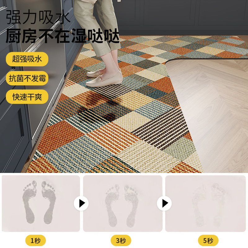 美式复古厨房地垫硅藻泥吸水垫L型防滑地毯防油防污7字型转角脚垫