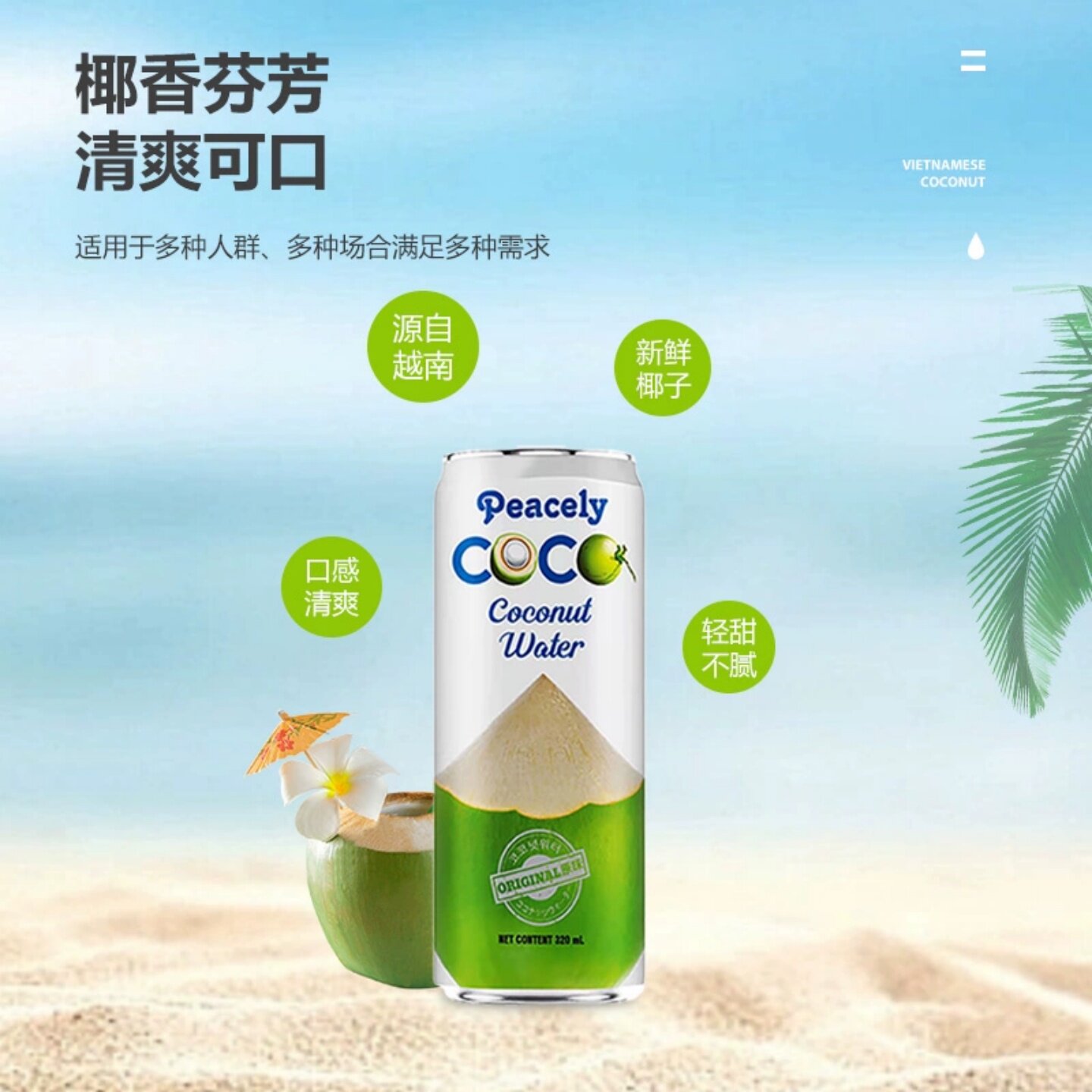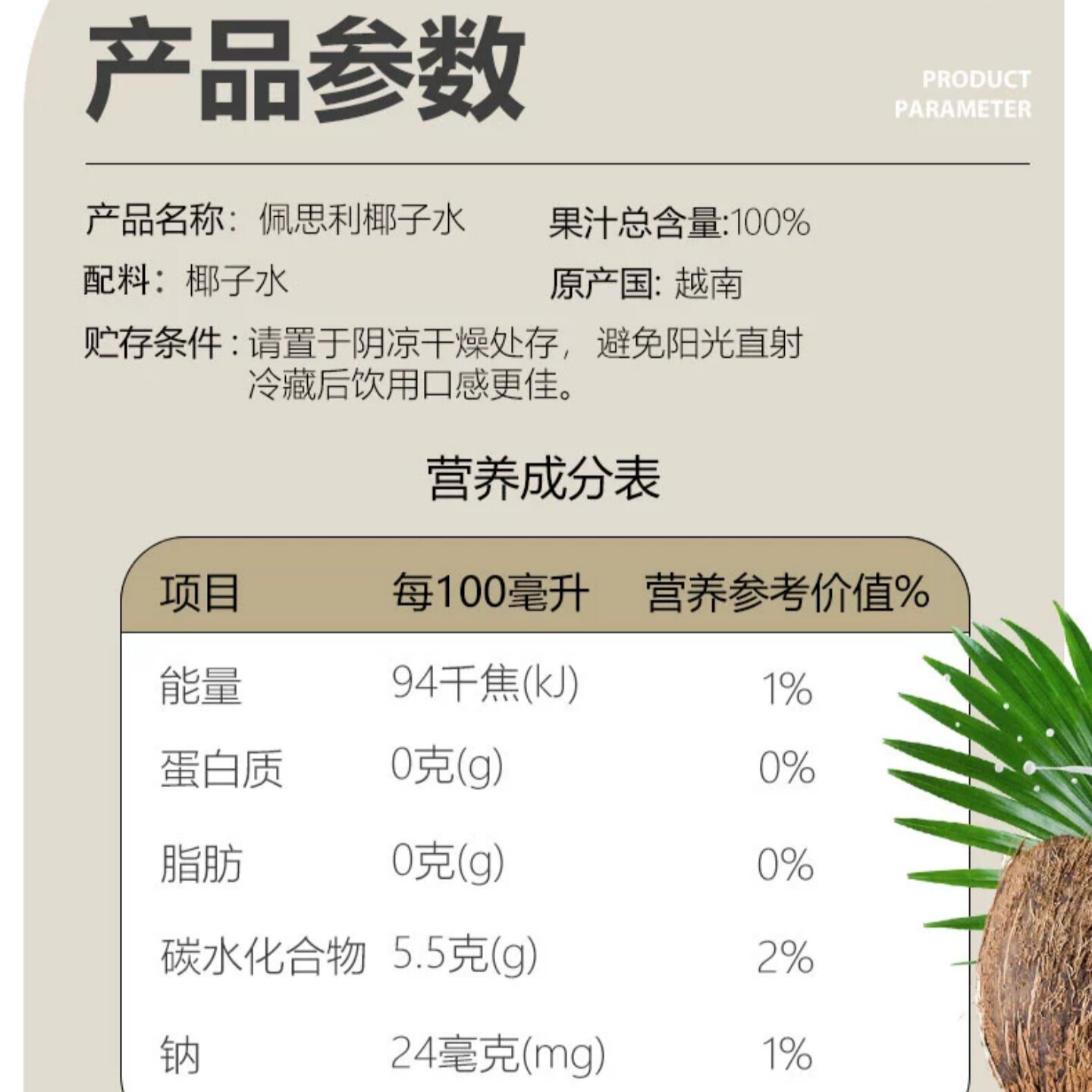 Peacely佩思利越南进口100%纯椰子水孕妇罐装含电解质椰青水果汁
