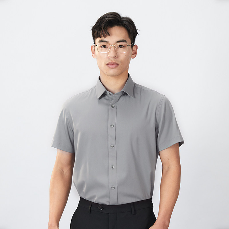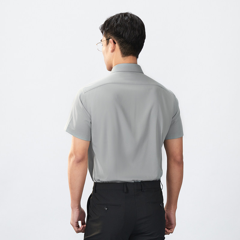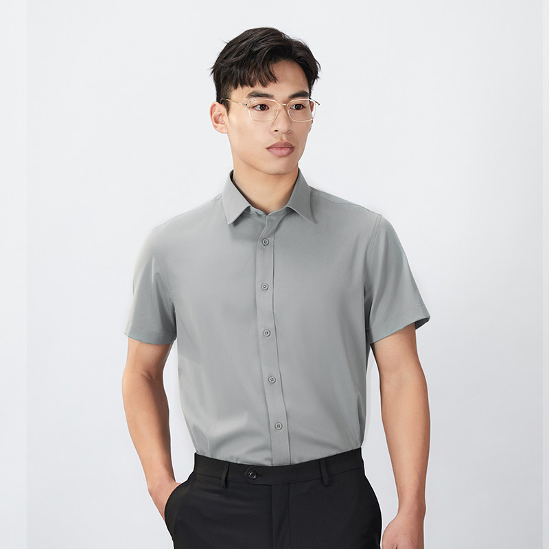 【商场同款】乔治白春夏男士短袖衬衫再生纤维素尖领灰绿色衬衣