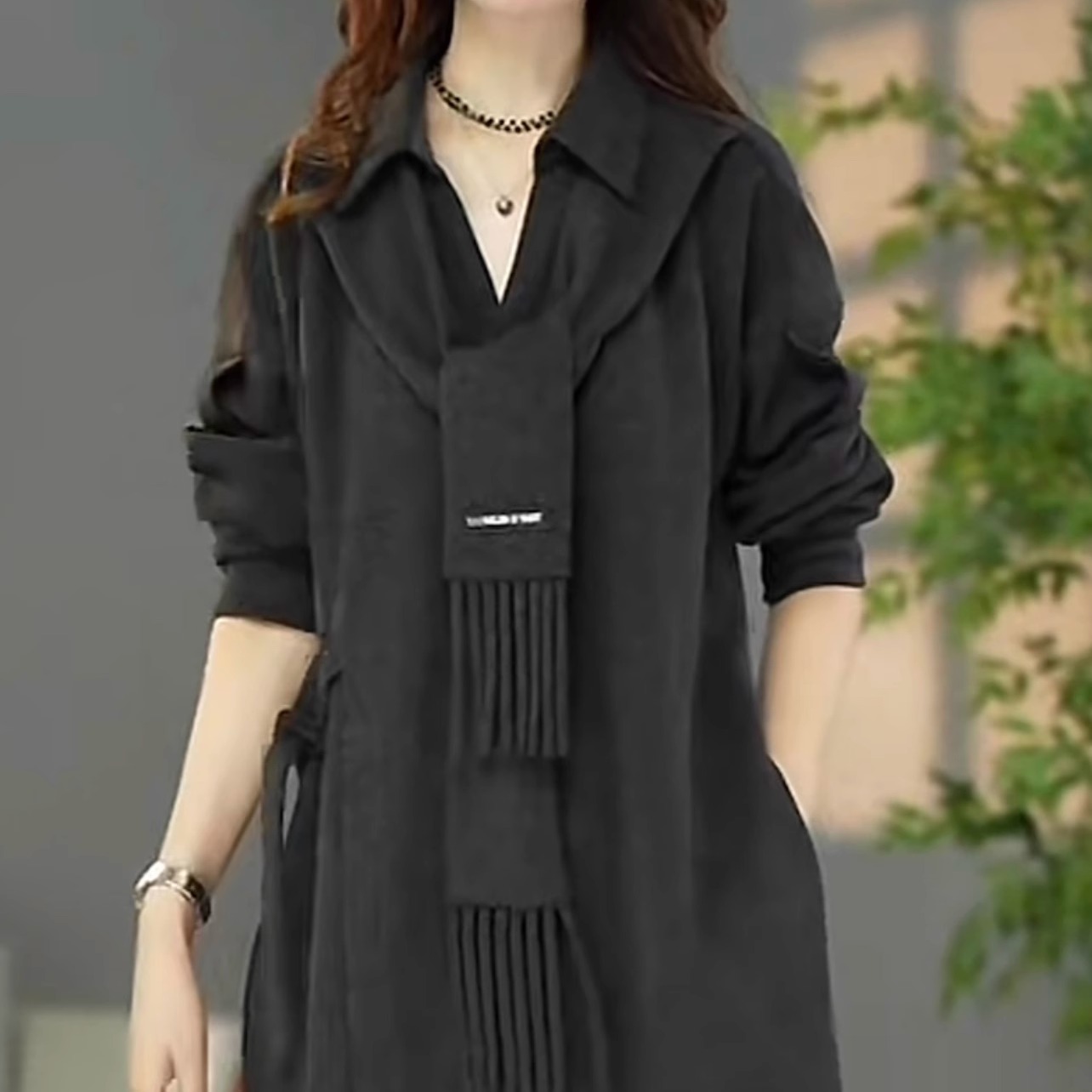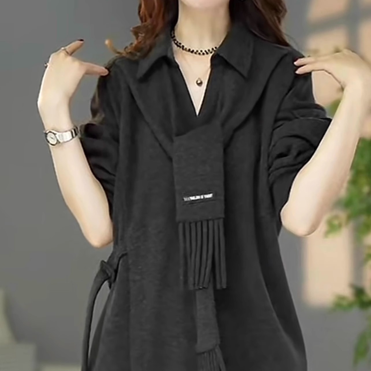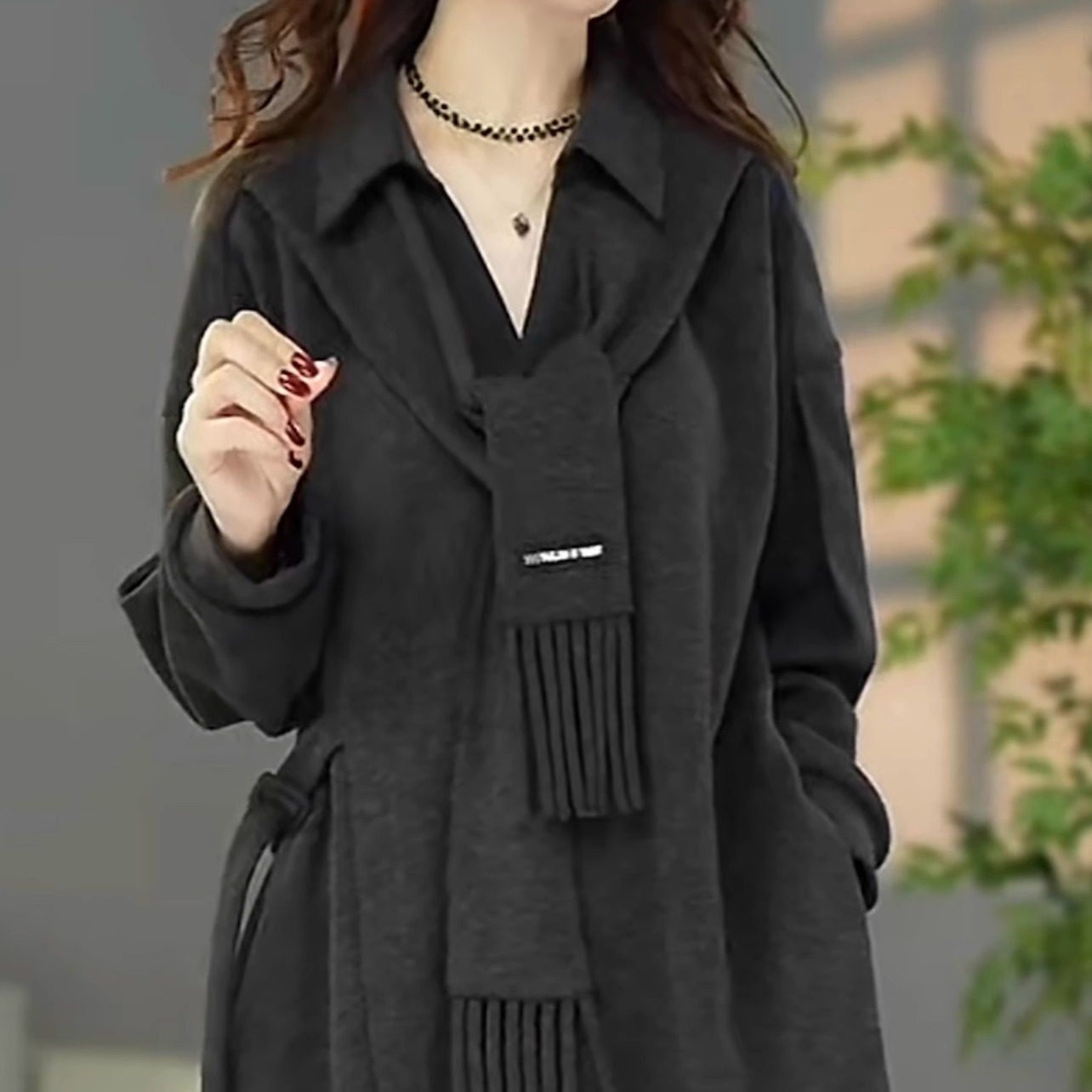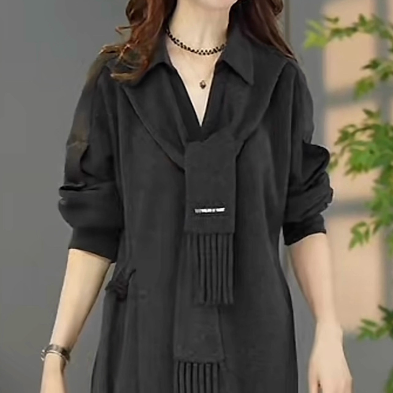高级磨毛精纺简约洋气减龄百搭礼服裙2025秋冬新款宽松围巾连衣裙