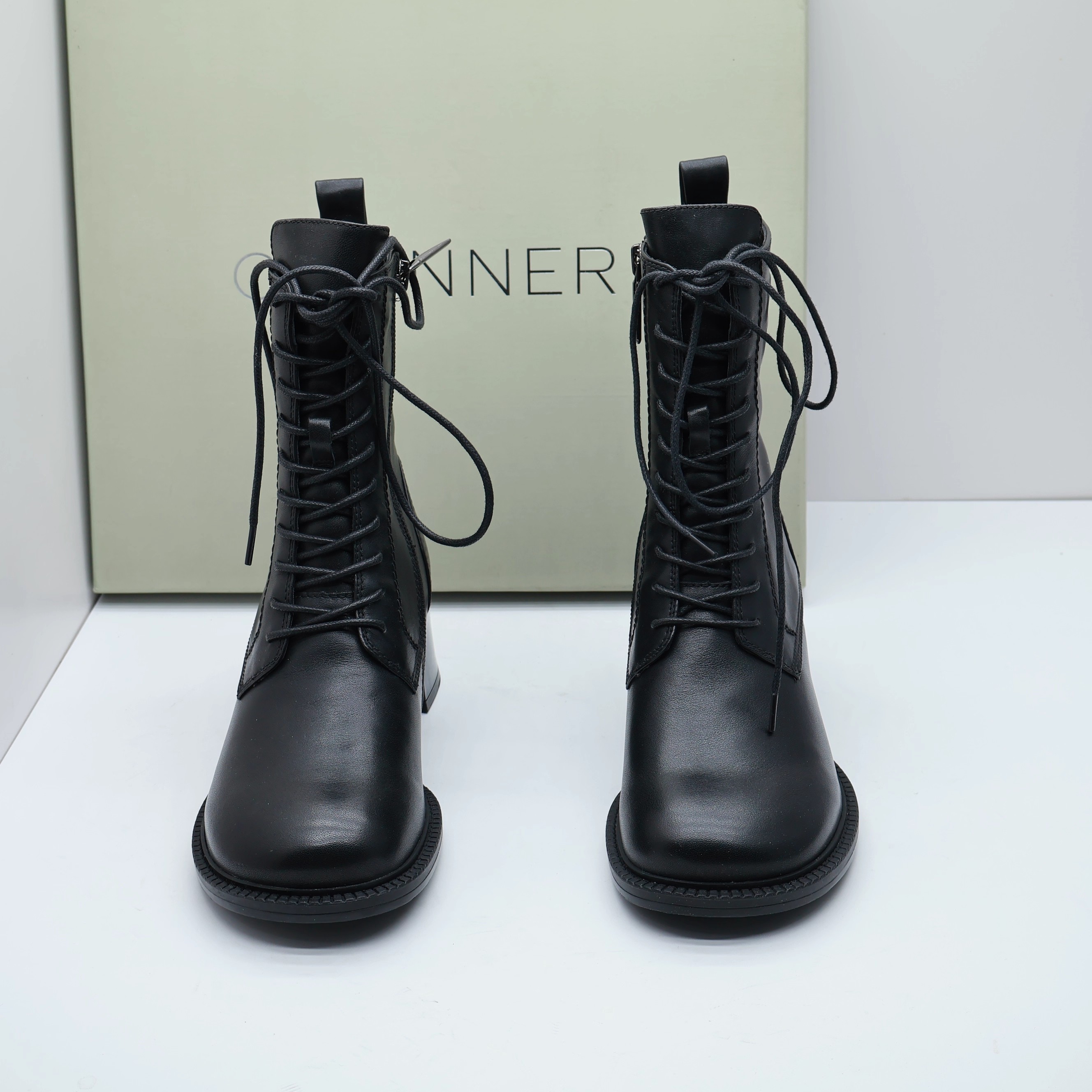 商场品牌撤柜断码秋冬季英伦真皮系带休闲绒里马丁靴高跟女短靴潮