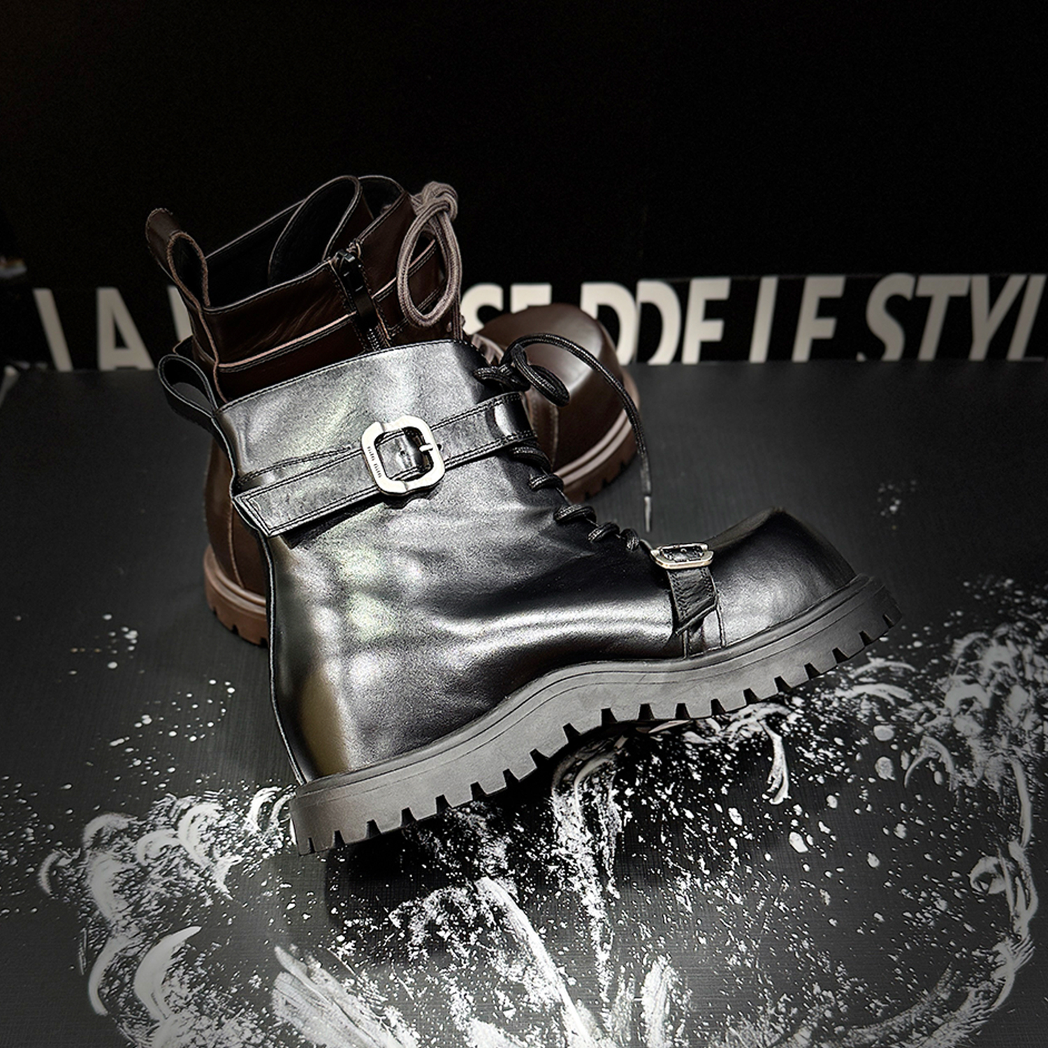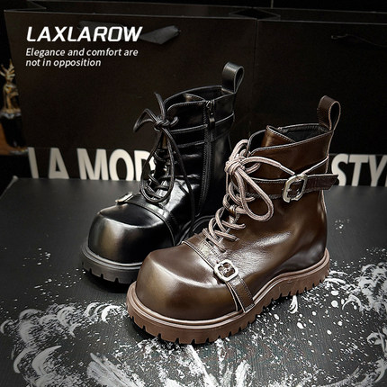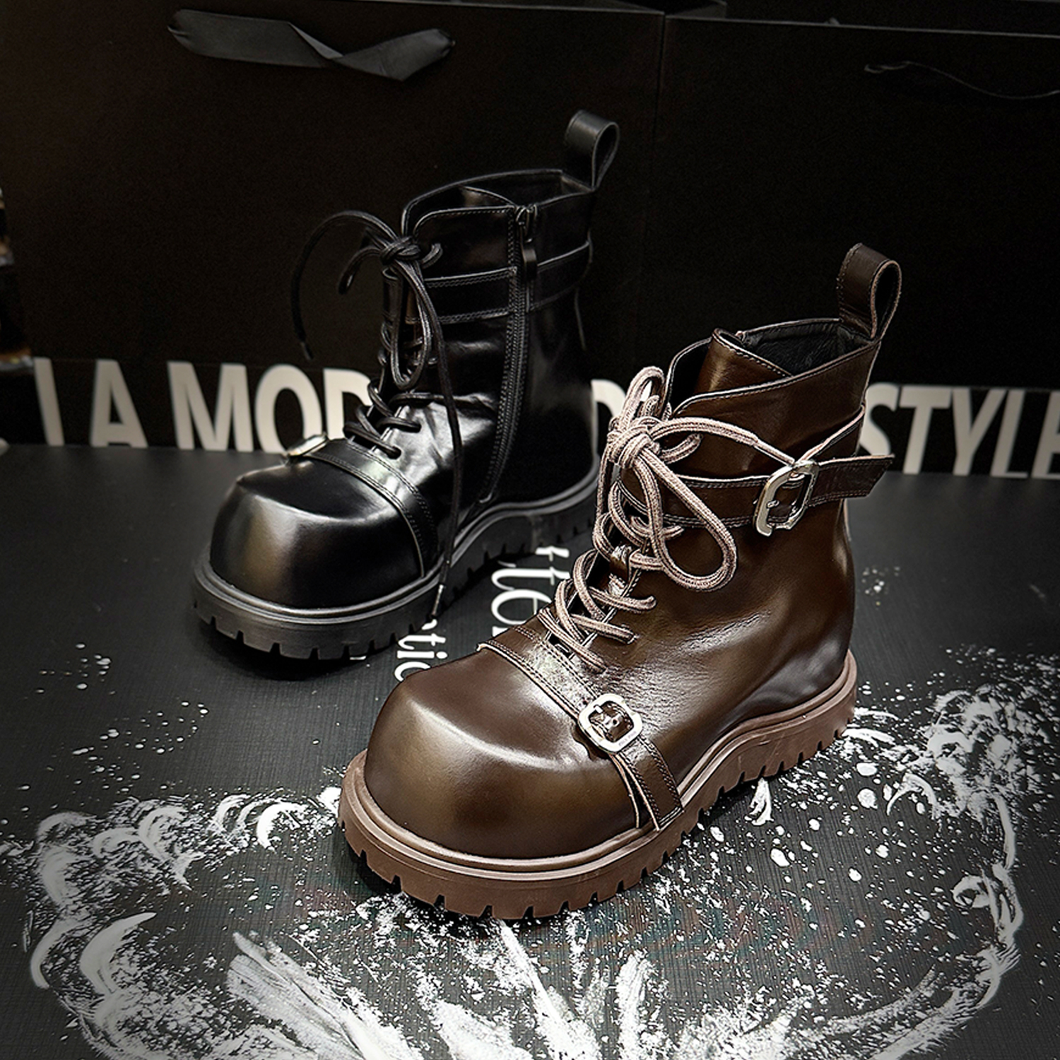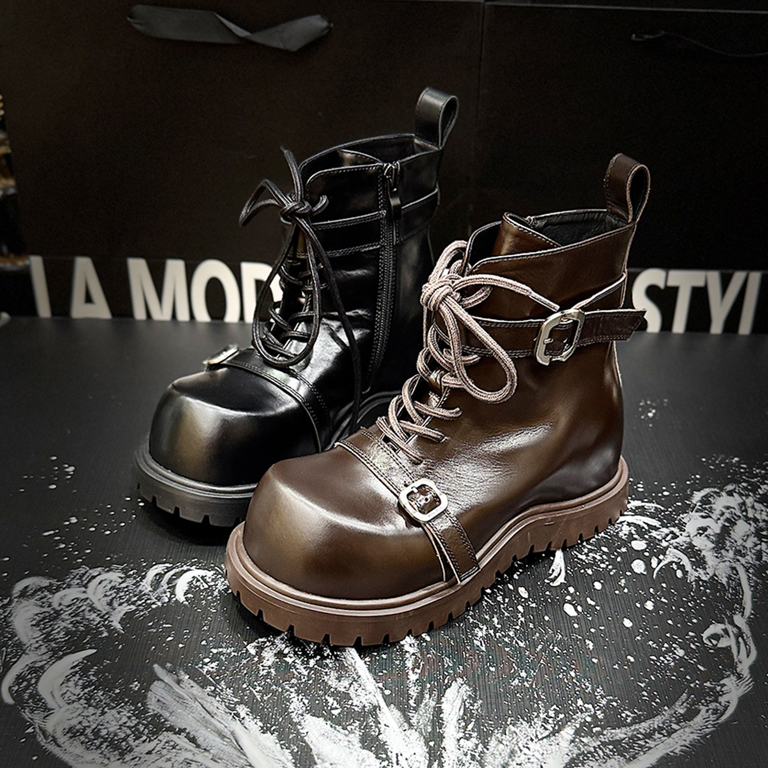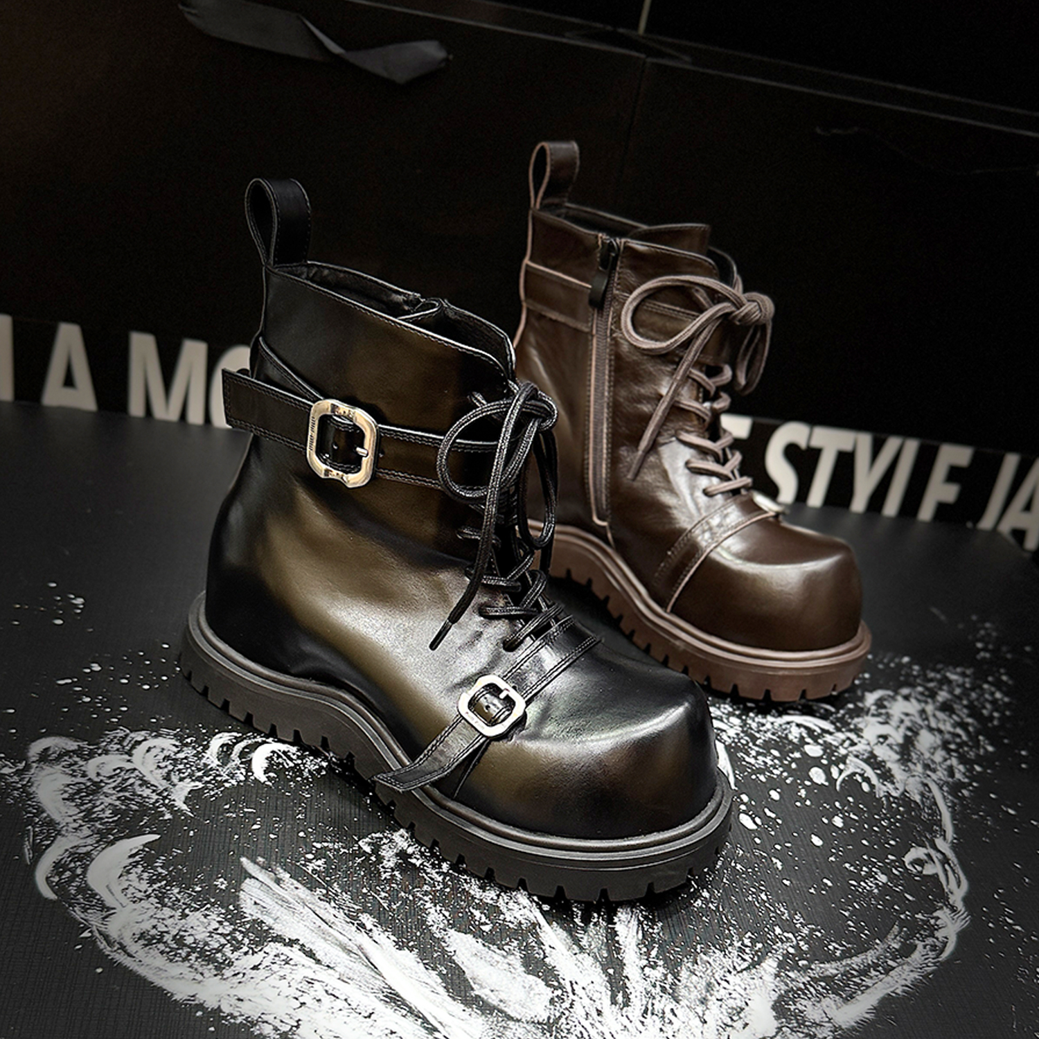 意大利进口胎牛纯皮复古英伦风机车短靴纯手工高级感厚底马丁靴女