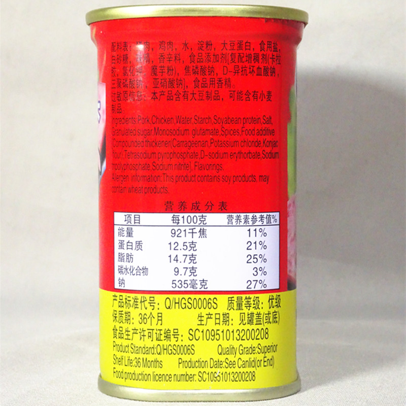 汇泉精火腿午餐肉罐头麻辣烫火锅冷串串冒菜经典原味速食商用包邮