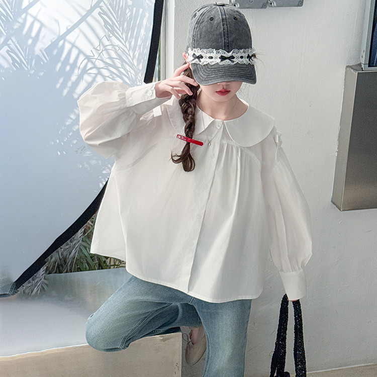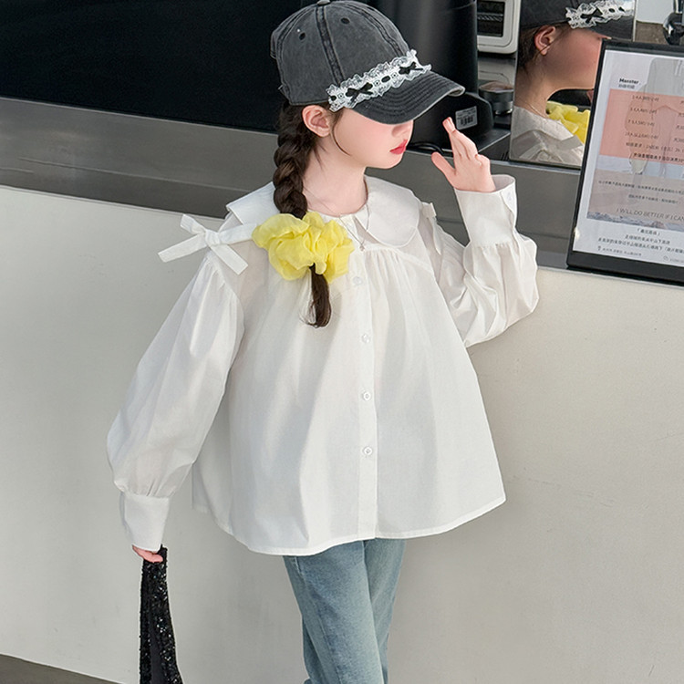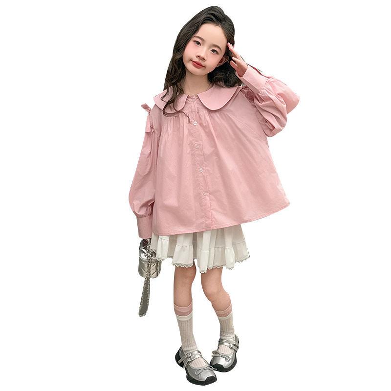 女童衬衫春秋款2025新款中大儿童甜美衬衣女孩春装长袖纯棉上衣潮