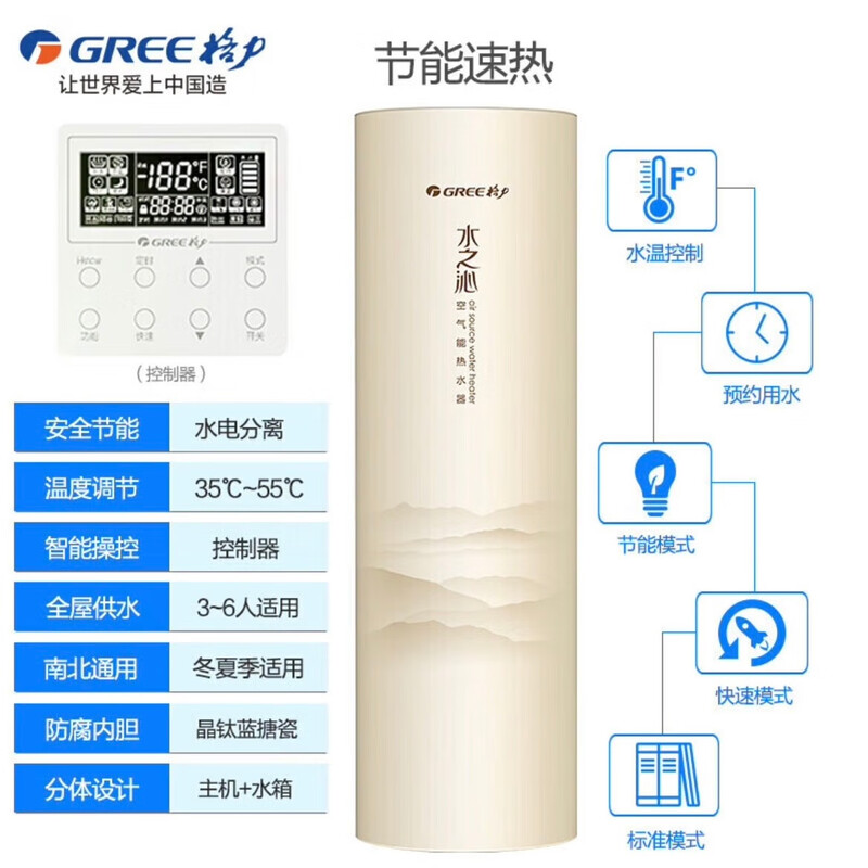 格力空气能热水器 水之沁200升容量一级能效 80°高温杀菌WIF智控
