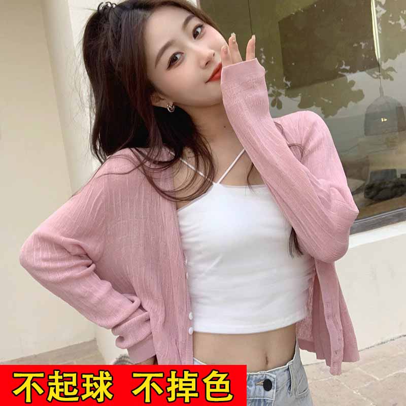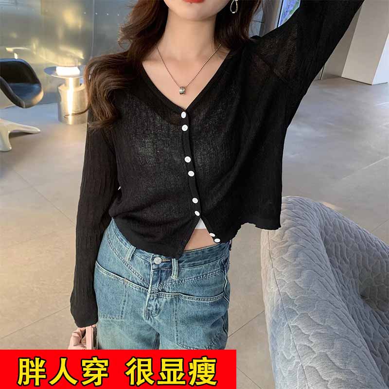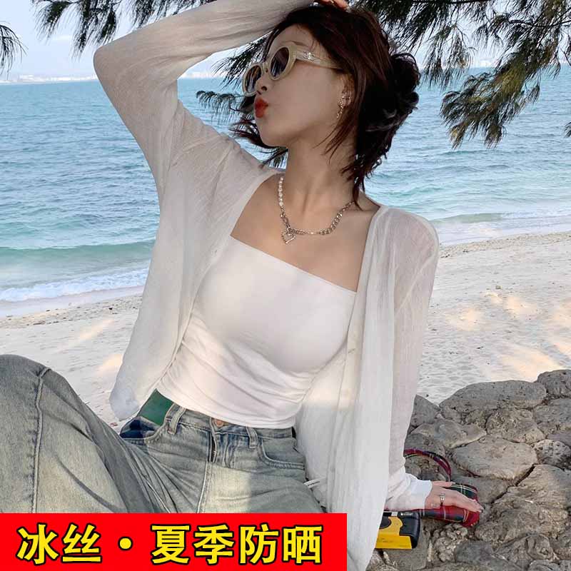 白色冰丝针织开衫女大码胖mm薄款披肩搭配吊带裙空调罩衫v领外套