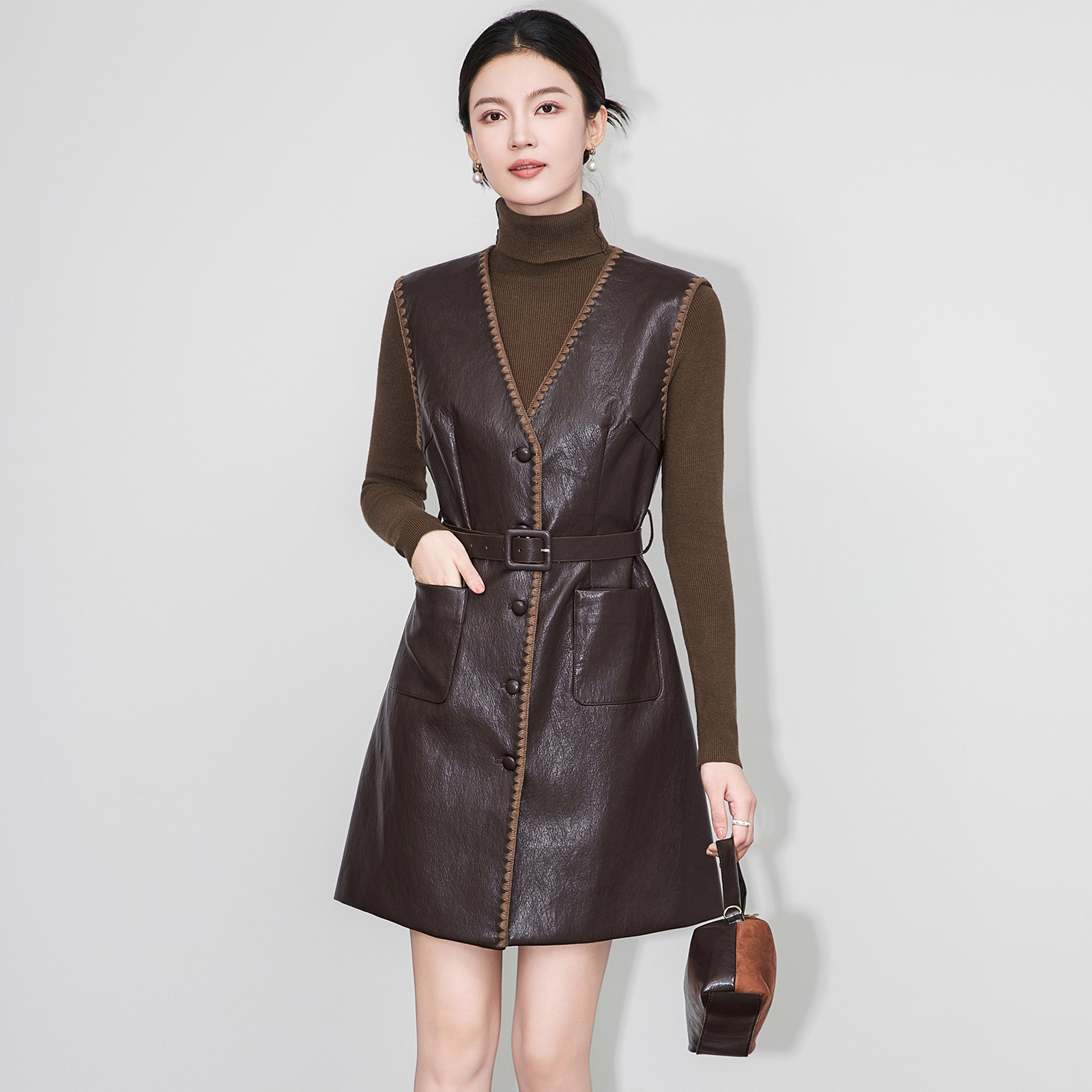 迪奥25秋冬新款两件套装裙女法式小香风蛋白皮背心裙+打底针织衫