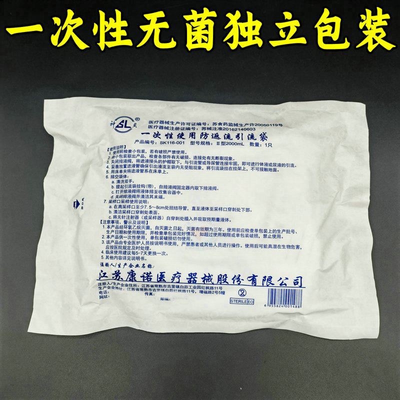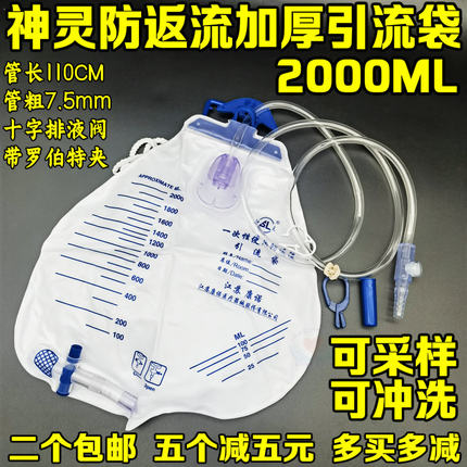 康诺2000ml防返流引流袋尿袋男女医用一次性集尿袋神灵盐水冲洗头